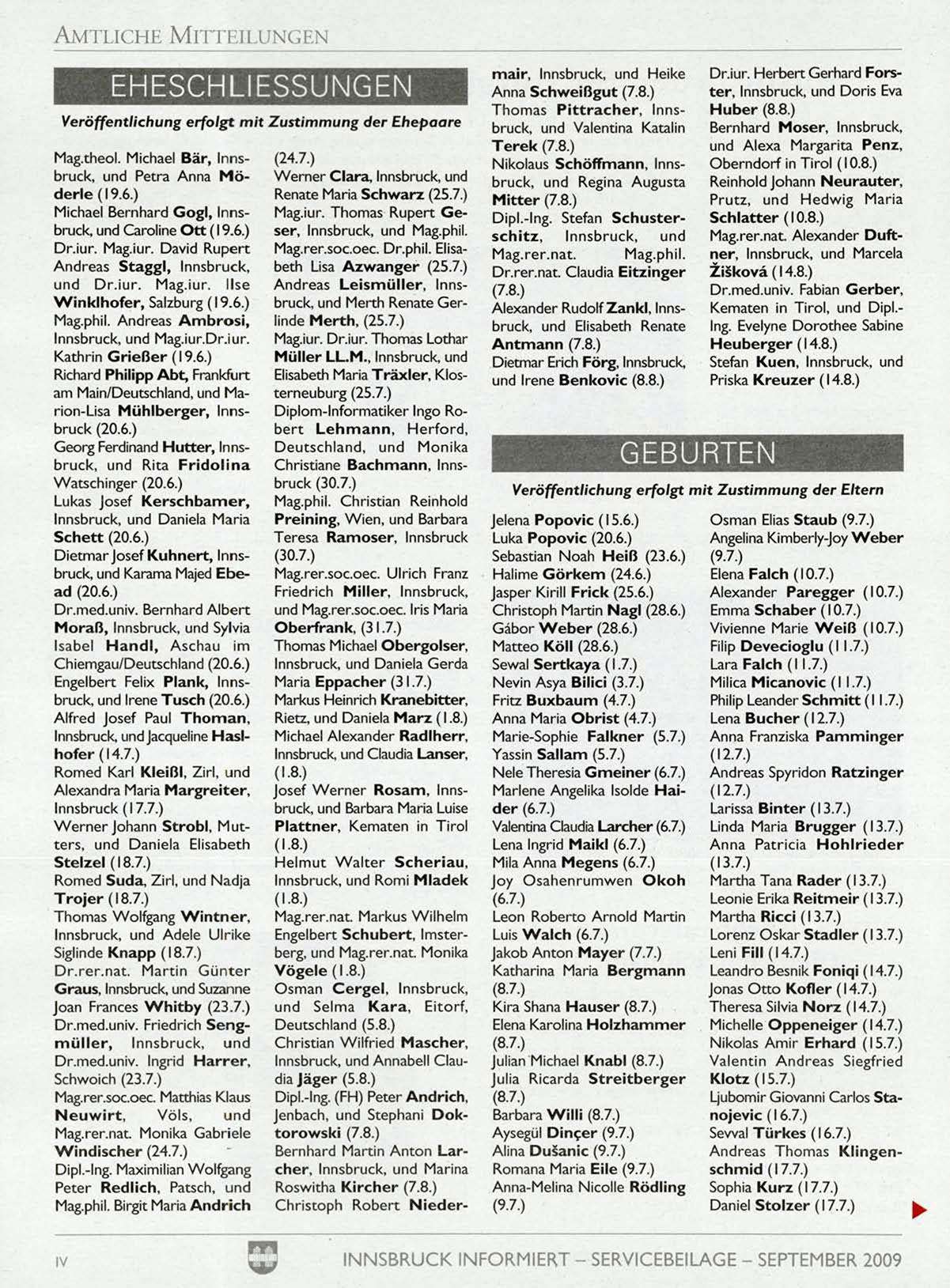 INNSBRUCK INFORMIERT - SERVICEBEILAGE - SEPTEMBER 2009