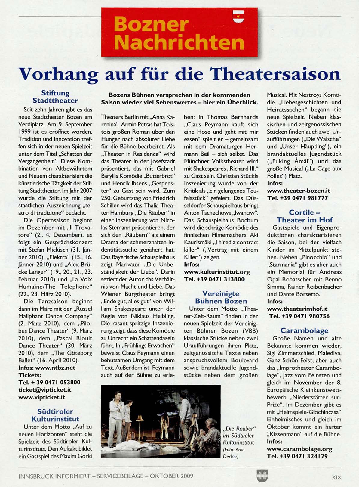 Spielzeit des Südtiroler Kulturinstituts. Den Auftakt bildet