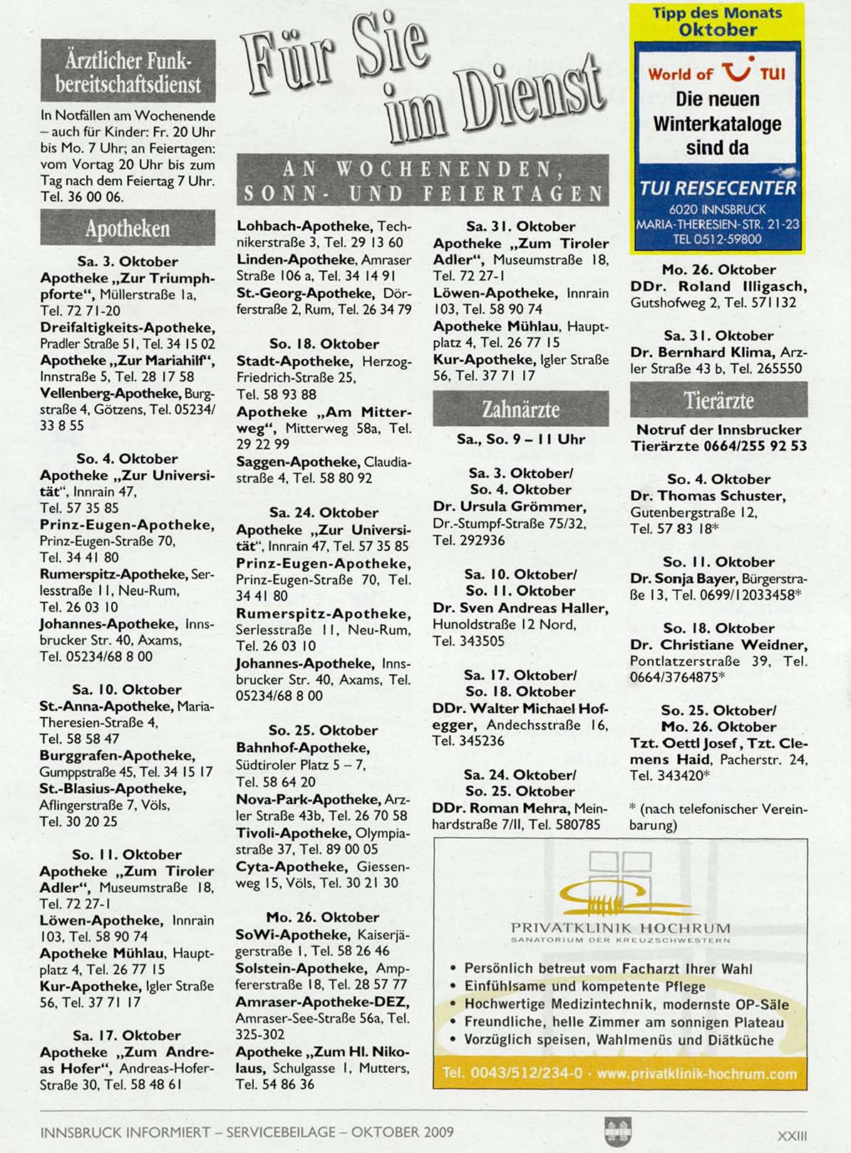 INNSBRUCK INFORMIERT - SERVICEBEILAGE - OKTOBER 2009