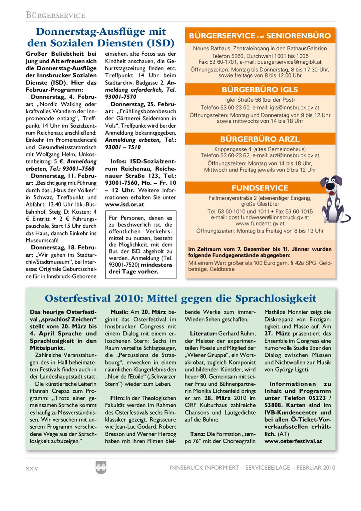 INNSBRUCK INFORMIERT — SERVICEBEILAGE - FEBRUAR 20 10