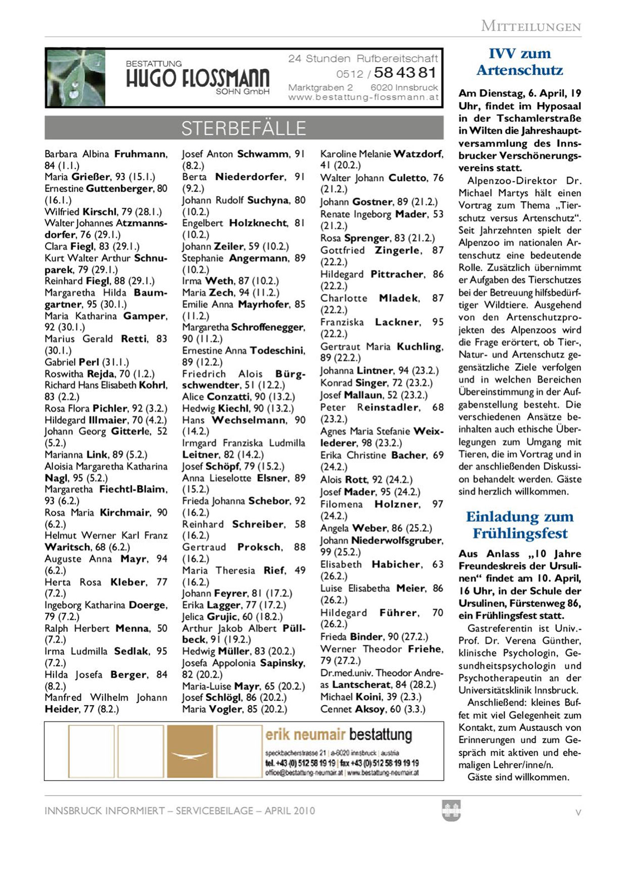 INNSBRUCK INFORMIERT - SERVICEBEILAGE — APRIL 2010