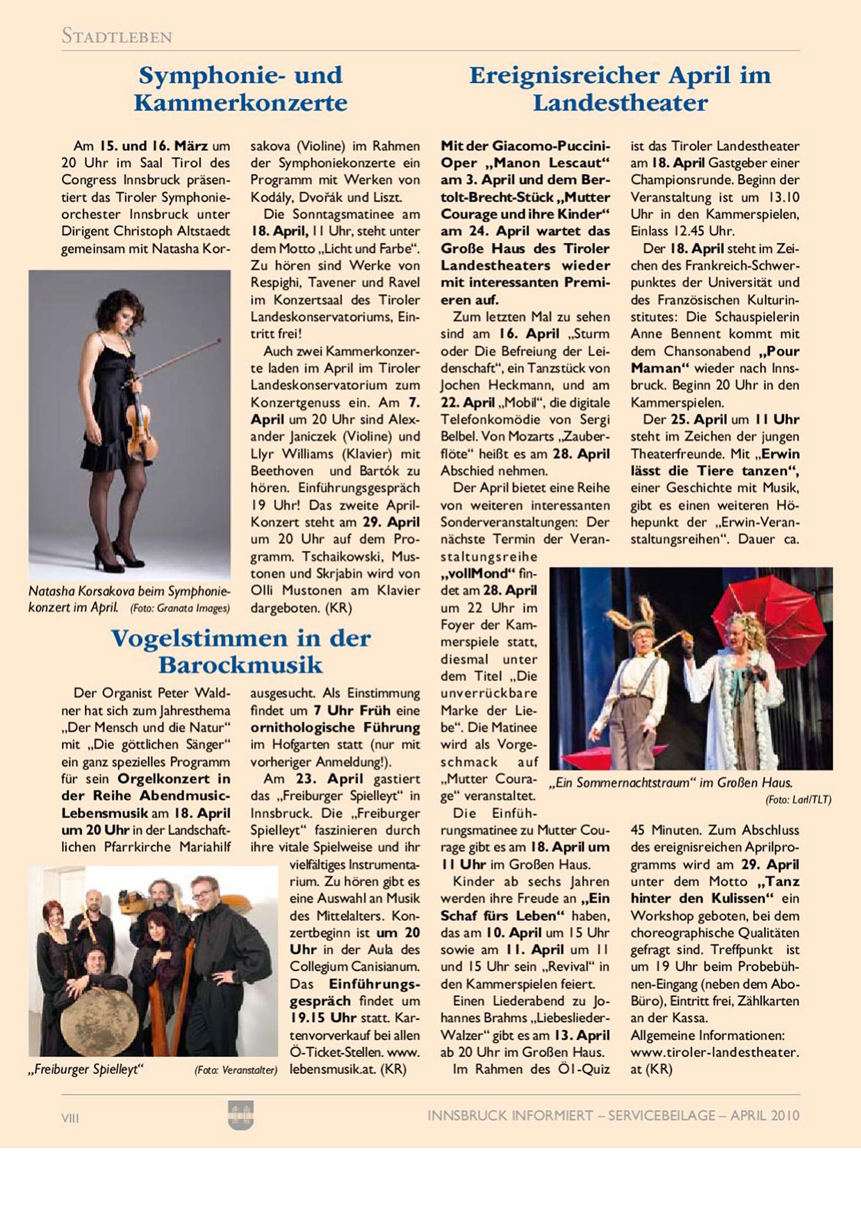 INNSBRUCK INFORMIERT - SERVICEBEILAGE—APRIL 2010