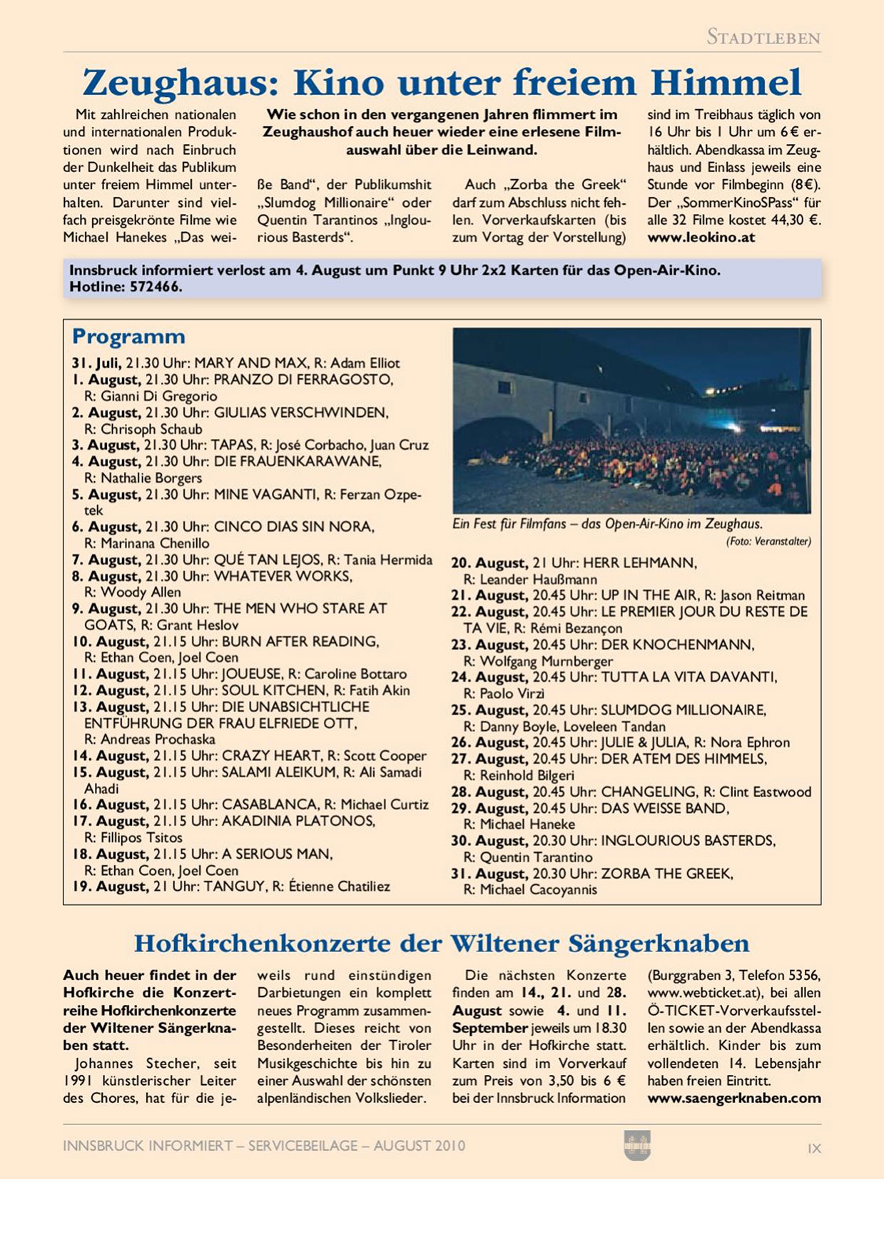 INNSBRUCK INFORMIERT - SERVICEBEILAGE — AUGUST 2010