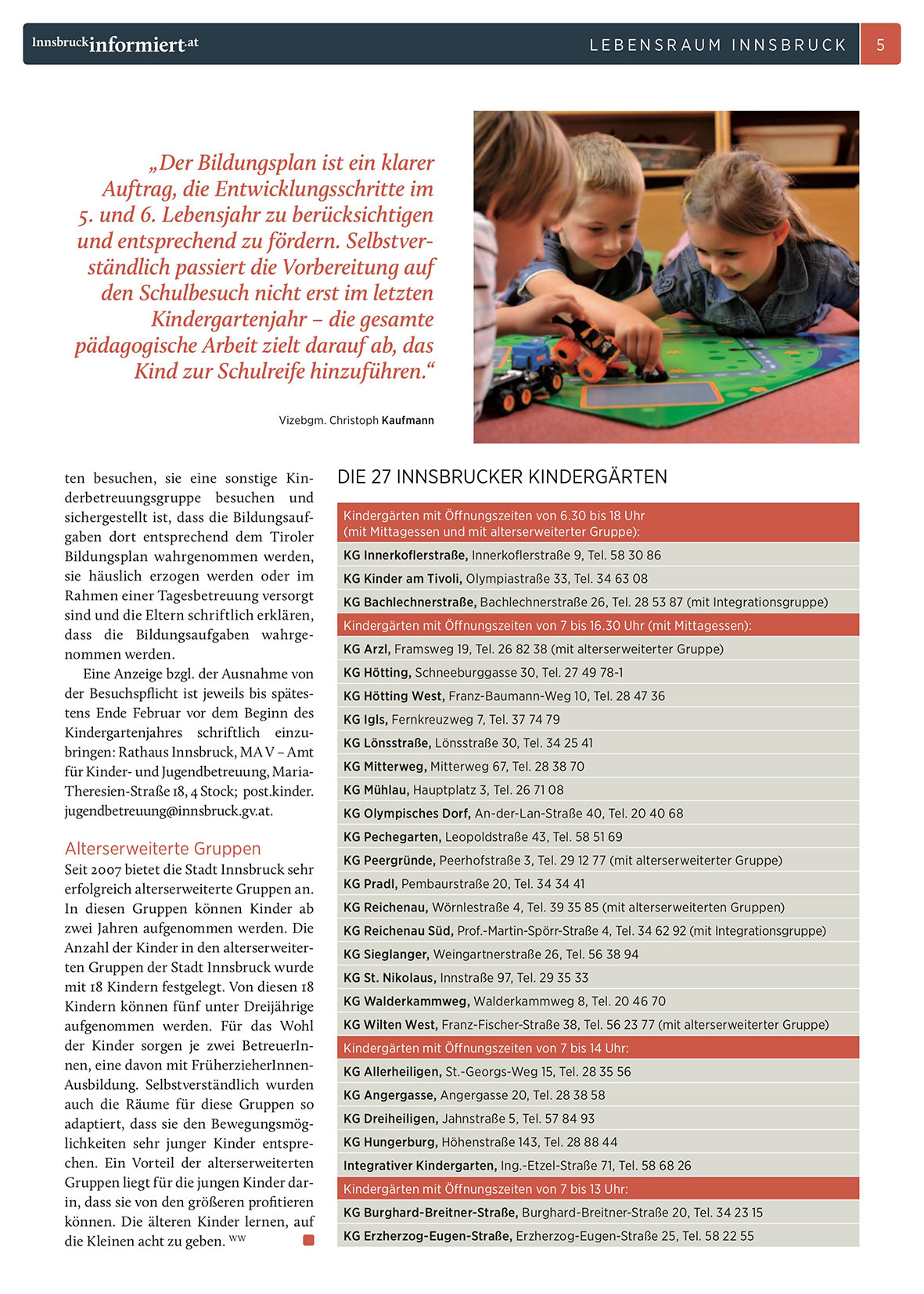 Kindergartenjahres schriftlich einzubringen: Rathaus Innsbruck, MA V – Amt