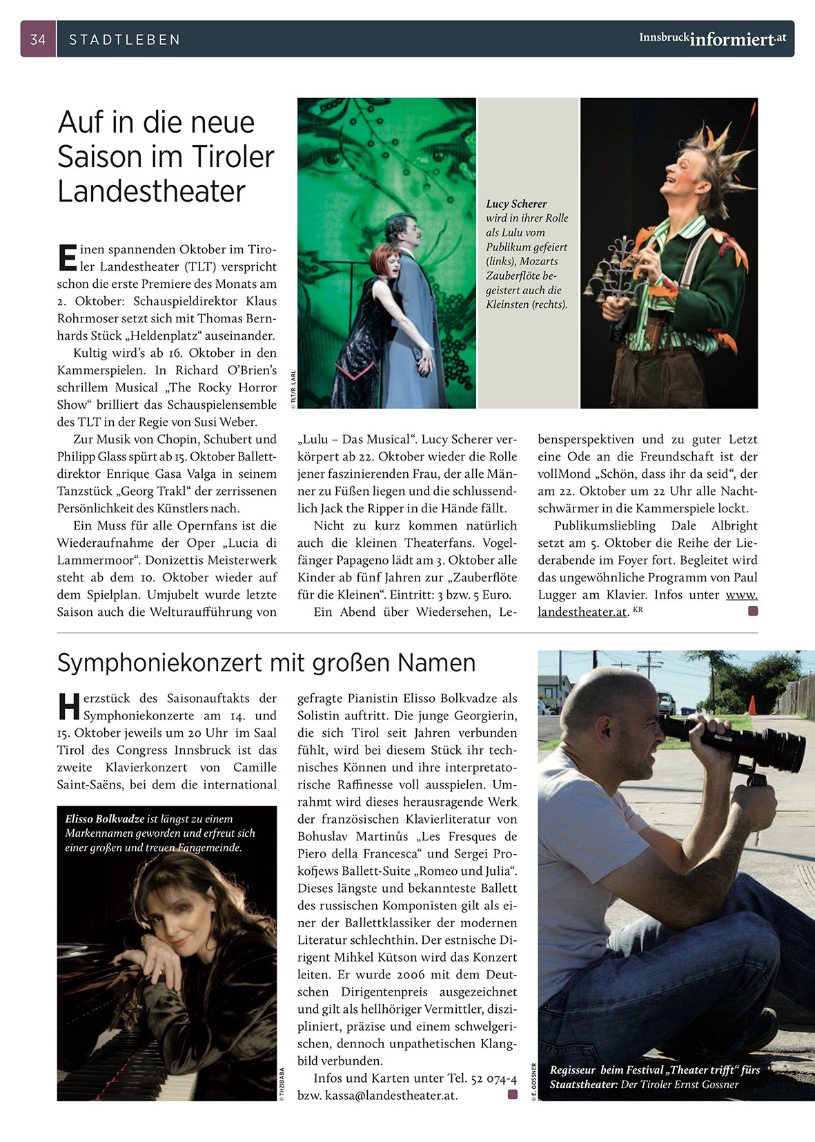 inen spannenden Oktober im Tiroler Landestheater (TLT) verspricht