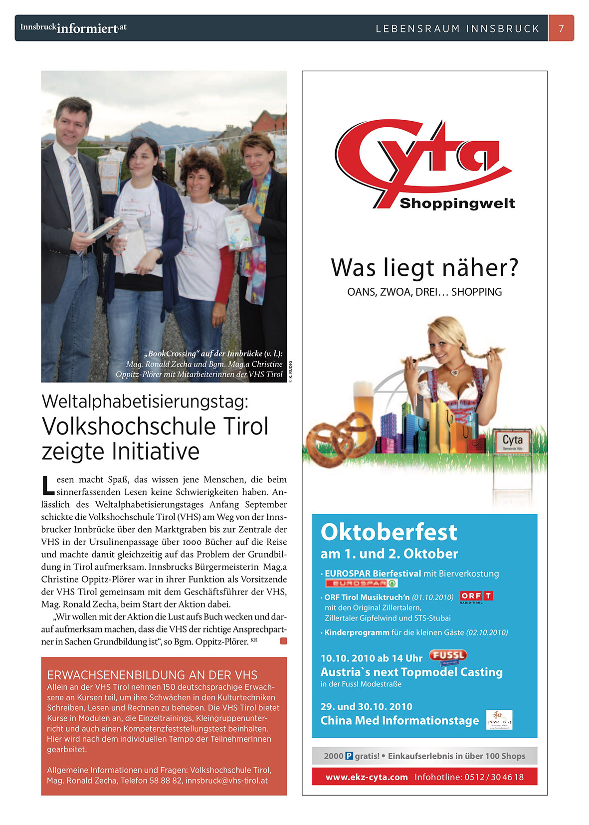 „Wir wollen mit der Aktion die Lust aufs Buch wecken und darauf aufmerksam machen, dass die VHS der richtige Ansprechpartner in Sachen Grundbildung ist“, so Bgm. Oppitz-Plörer. KR