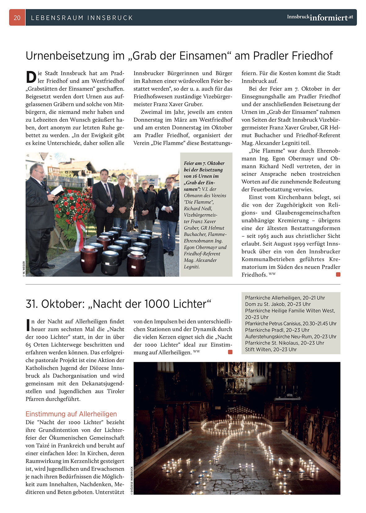 ie Stadt Innsbruck hat am Pradler Friedhof und am Westfriedhof