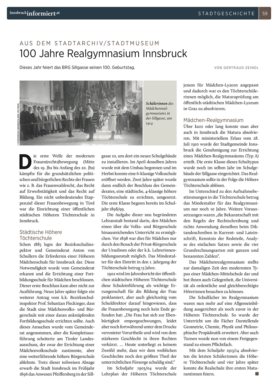 wurde noch im selben Jahr im Schulgebäude der Sillgasse eingerichtet. Das Realgymnasium sollte in der Folge die Höhere