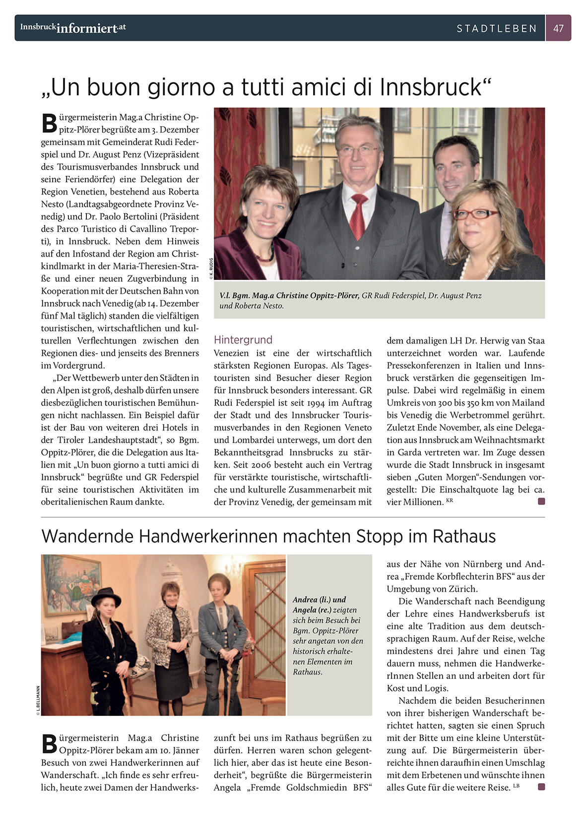 der Stadt und des Innsbrucker Tourismusverbandes in den Regionen Veneto