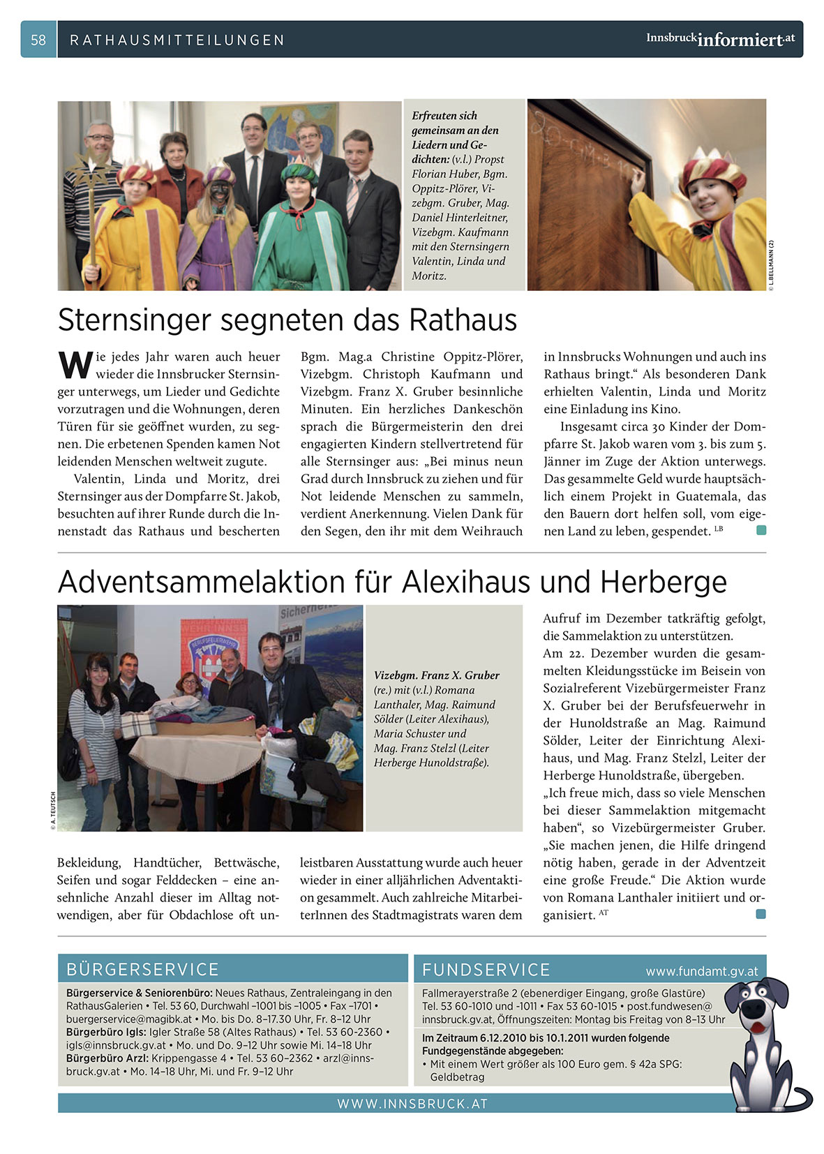 wieder die Innsbrucker Sternsinger unterwegs, um Lieder und Gedichte
