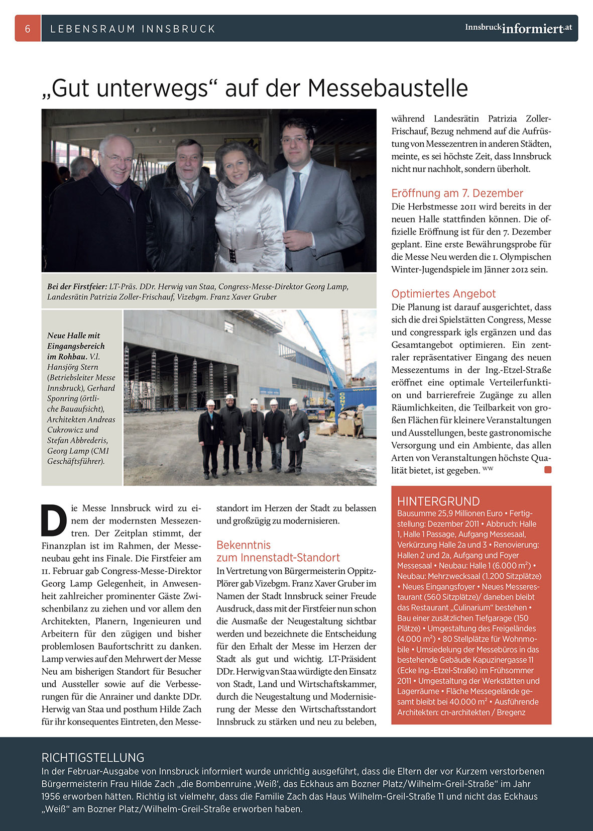 In der Februar-Ausgabe von Innsbruck informiert wurde unrichtig ausgeführt, dass die eltern der vor Kurzem verstorbenen