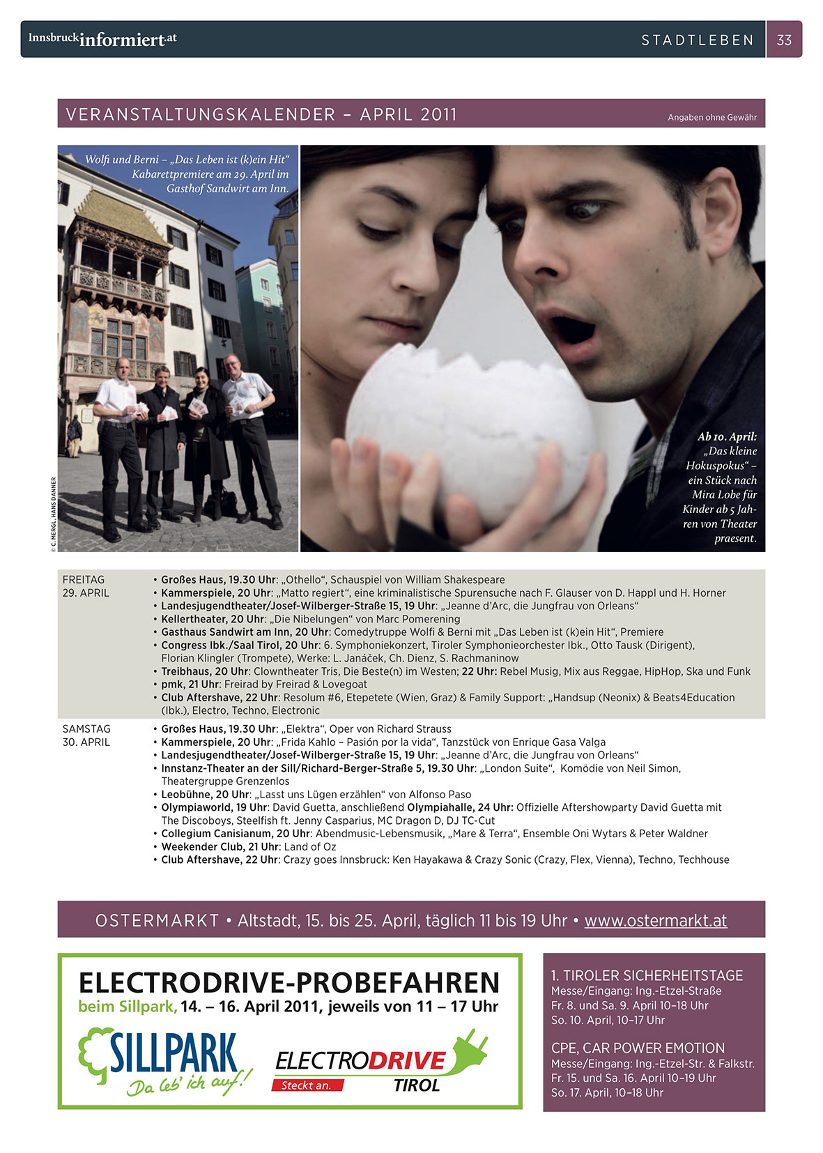 beim Sillpark, 14. – 16. april 2011, jeweils von 11 – 17 Uhr