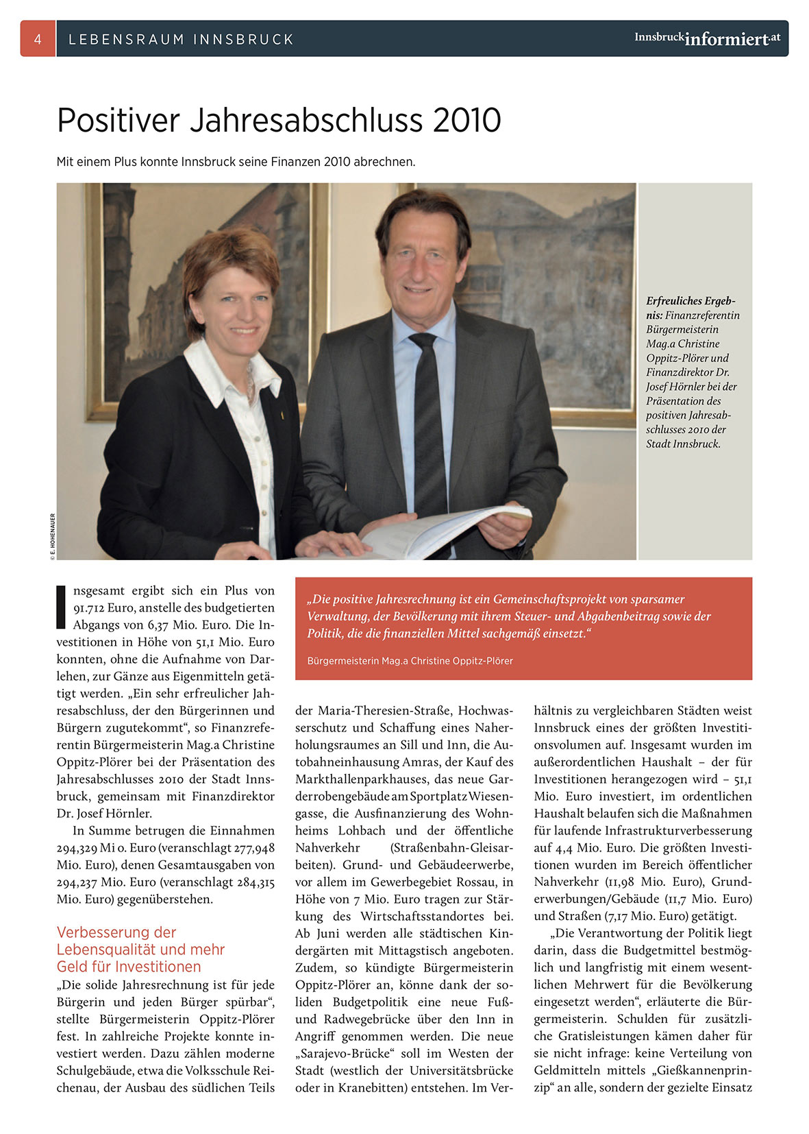 Jahresabschlusses 2010 der Stadt Innsbruck, gemeinsam mit Finanzdirektor