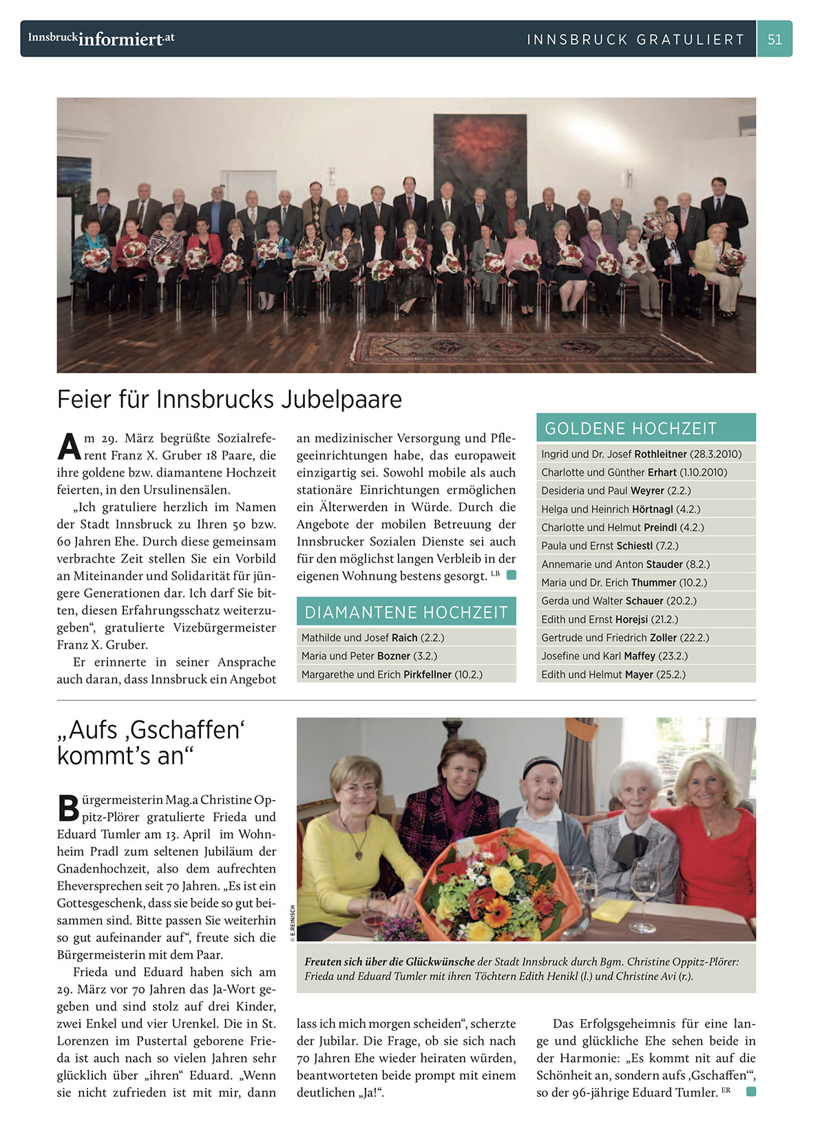der Stadt Innsbruck zu Ihren 50 bzw.