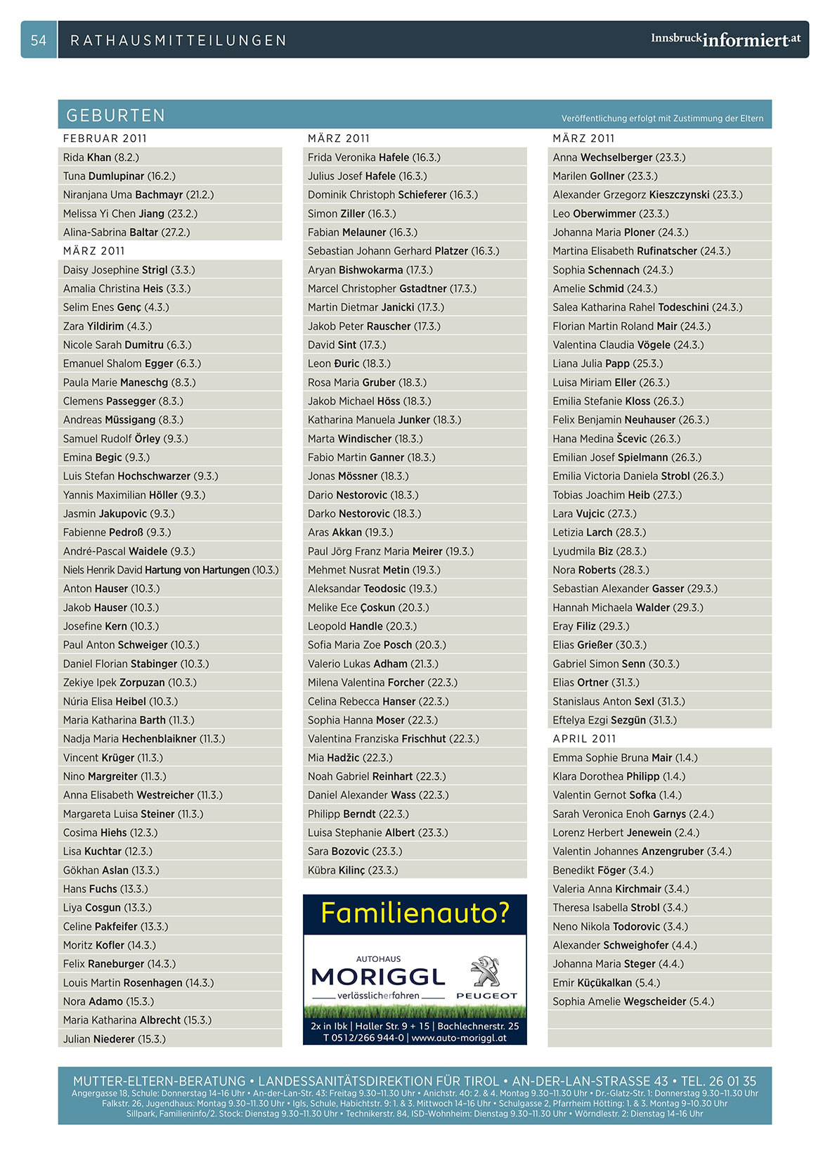 mutter-eltern-beratung • landessanitätsdirektion für tirol • An-der-Lan-StraSSe 43 • Tel. 26 01 35