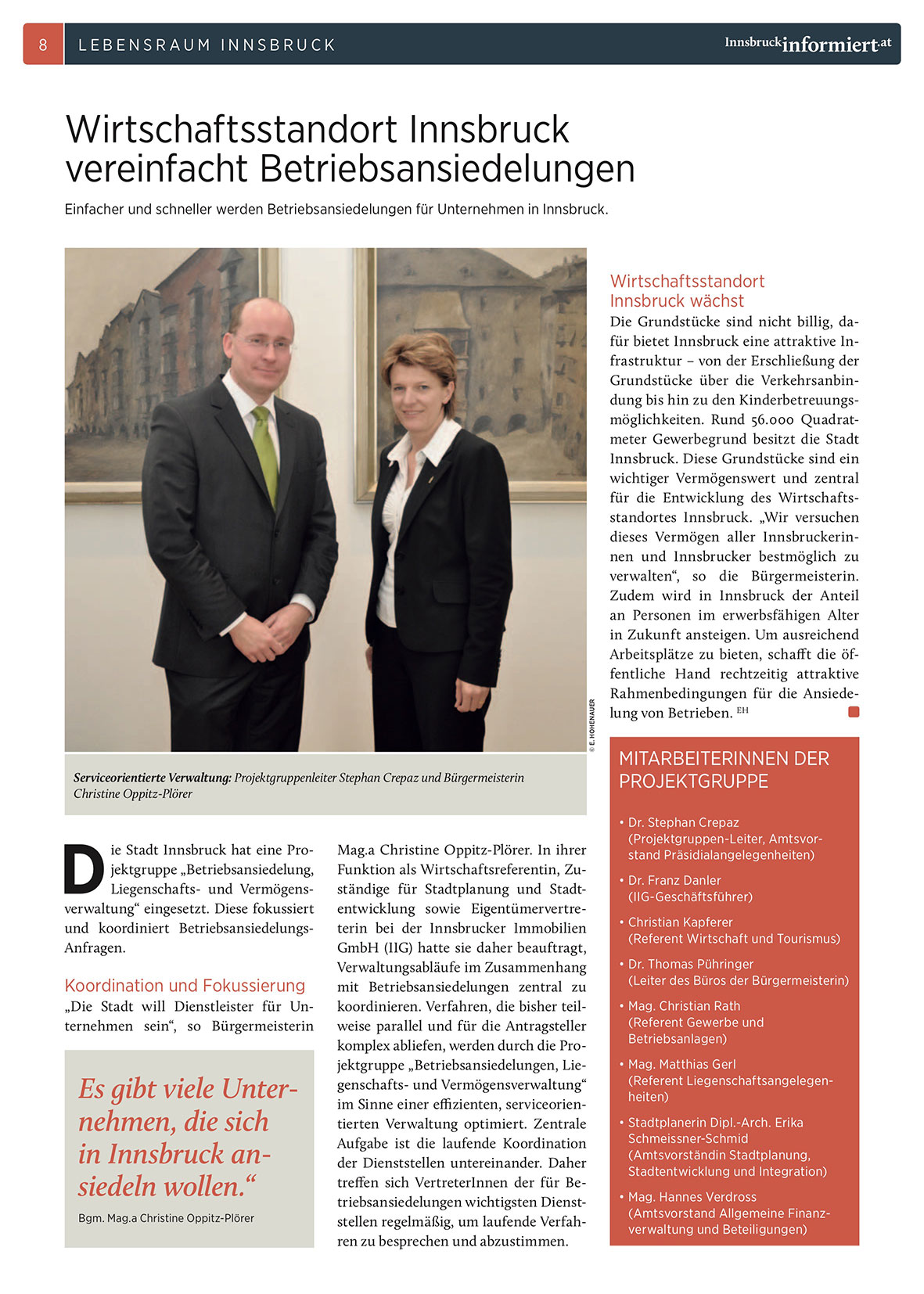 ie Stadt Innsbruck hat eine Projektgruppe „Betriebsansiedelung,