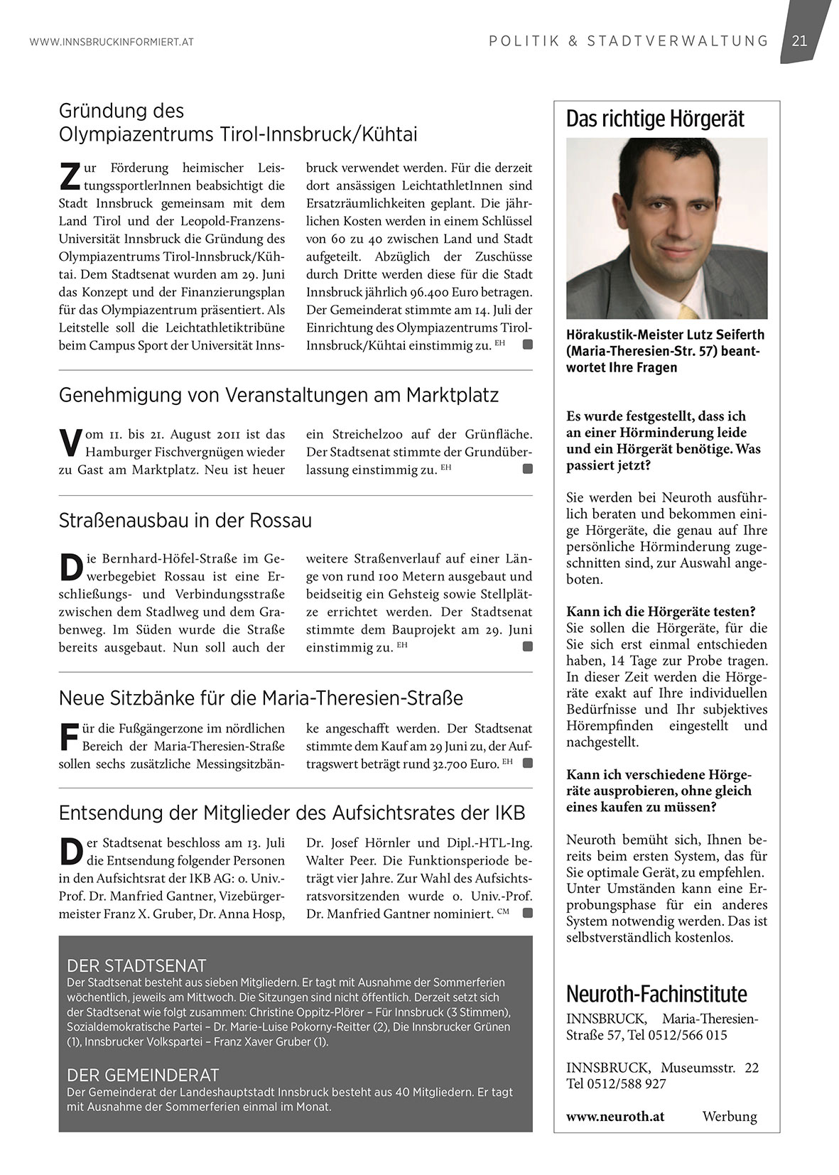 Olympiazentrums Tirol-Innsbruck/Kühtai. Dem Stadtsenat wurden am 29. Juni