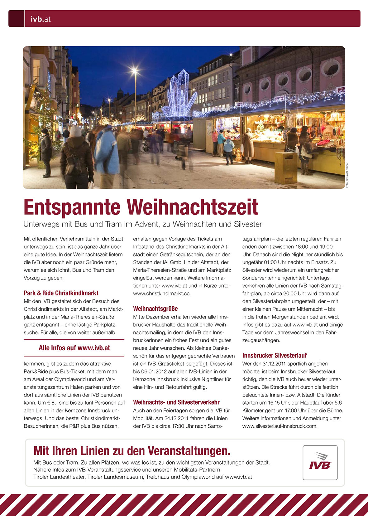 Mitte Dezember erhalten wieder alle Innsbrucker Haushalte das traditionelle Weihnachtsmailing, in dem die IVB den InnsbruckerInnen ein frohes Fest und ein gutes