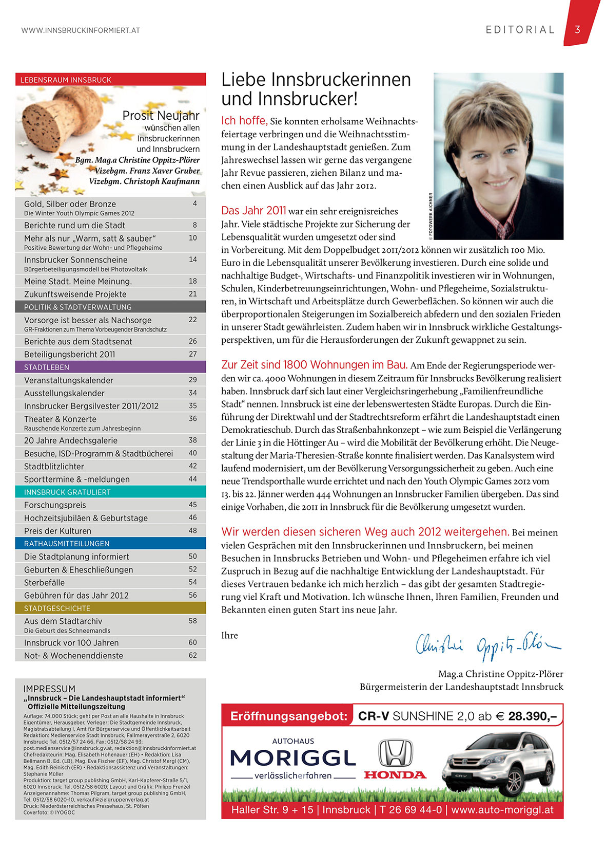 Auflage: 74.000 stück; geht per post an alle haushalte in innsbruck