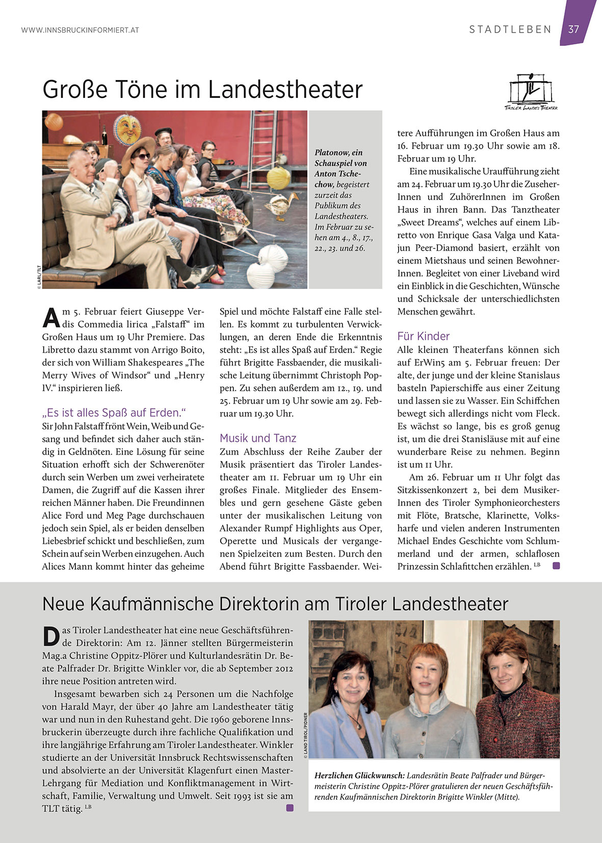 ihre langjährige Erfahrung am Tiroler Landestheater. Winkler