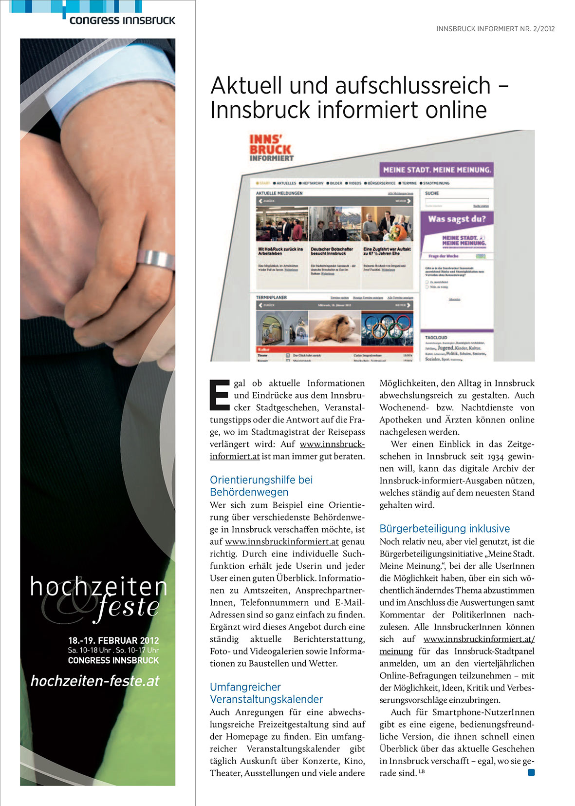 und Eindrücke aus dem Innsbrucker Stadtgeschehen, Veranstaltungstipps oder die Antwort auf die Frage, wo im Stadtmagistrat der Reisepass