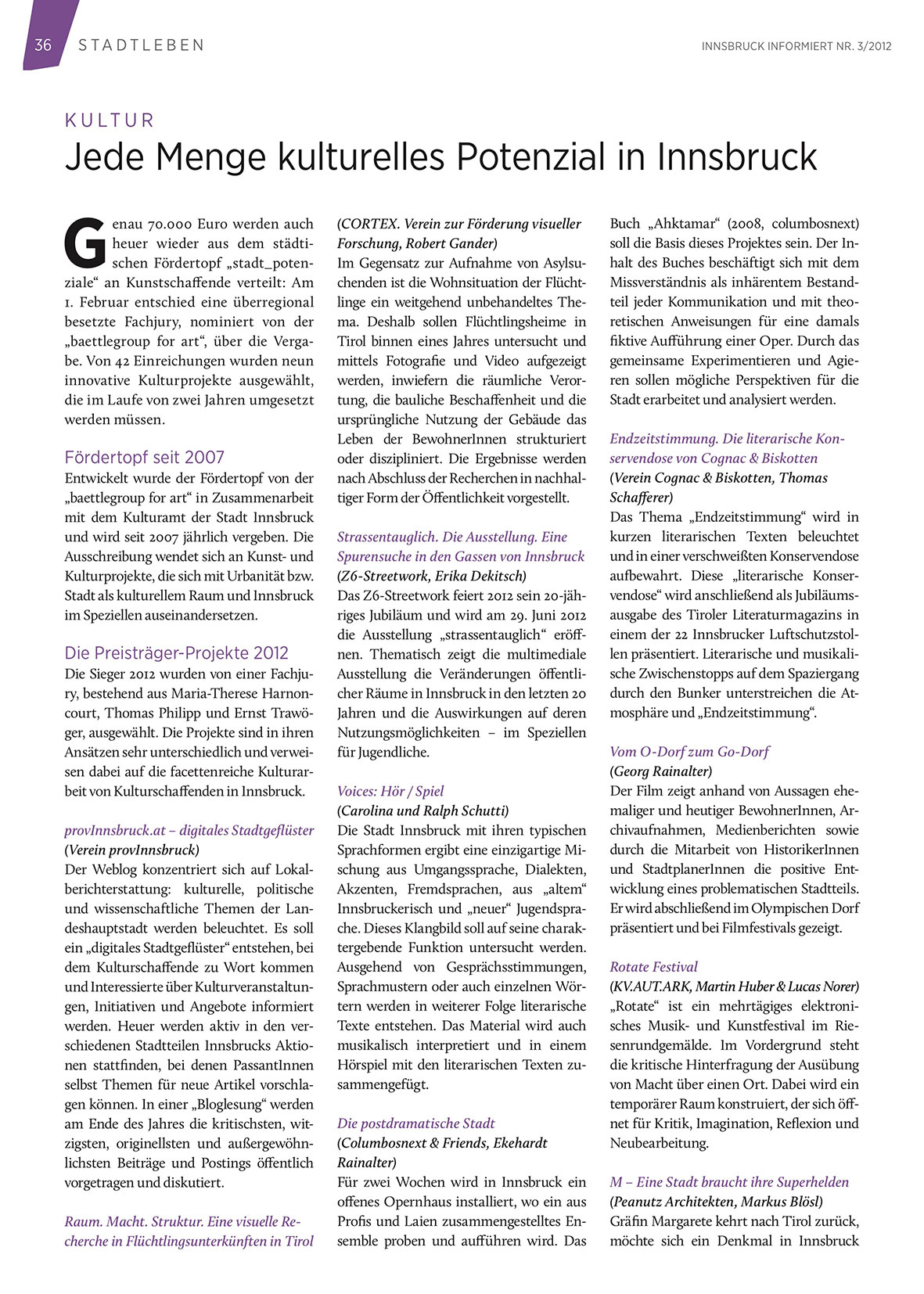 Ansätzen sehr unterschiedlich und verweisen dabei auf die facettenreiche Kulturarbeit von Kulturschaffenden in Innsbruck.