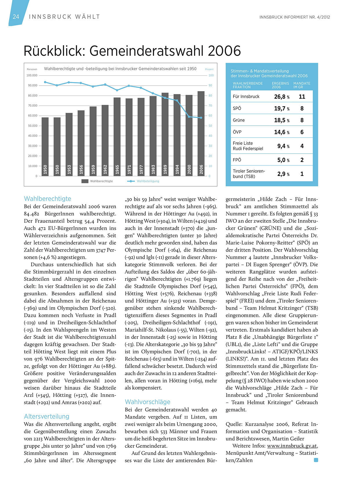 und Höttinger Au (+323) voran. Demgegenüber stehen sinkende Wahlberechtigtenziffern dieses Segmentes in Pradl