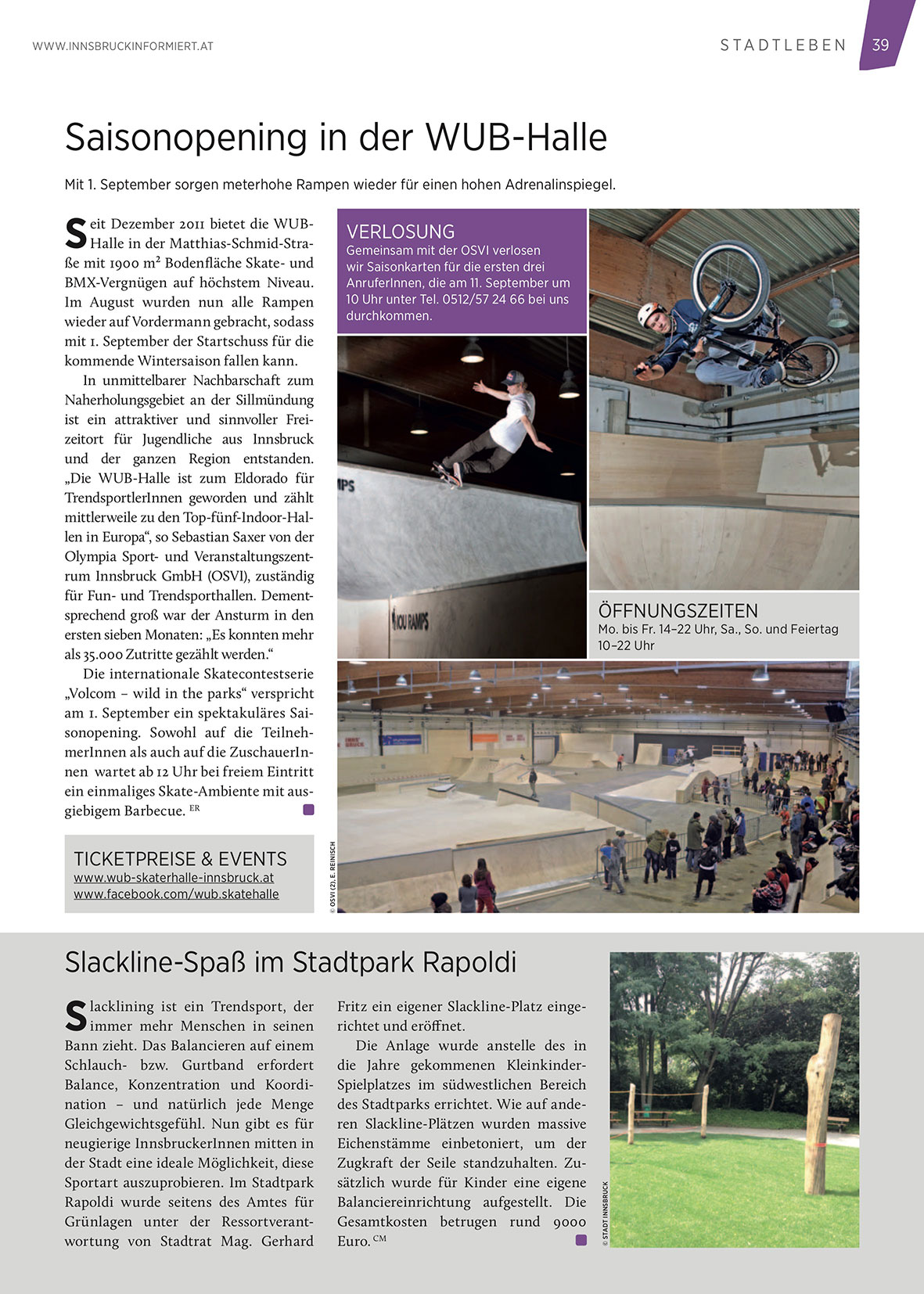 ist ein attraktiver und sinnvoller Freizeitort für Jugendliche aus Innsbruck