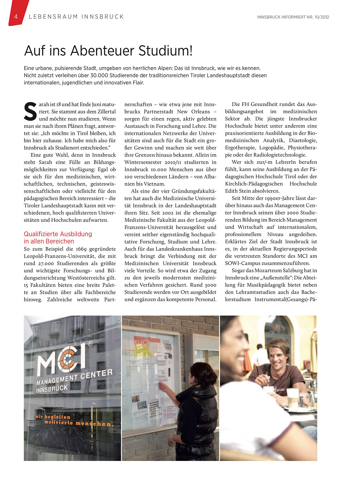 Nicht zuletzt verleihen über 30.000 Studierende der traditionsreichen Tiroler Landeshauptstadt diesen