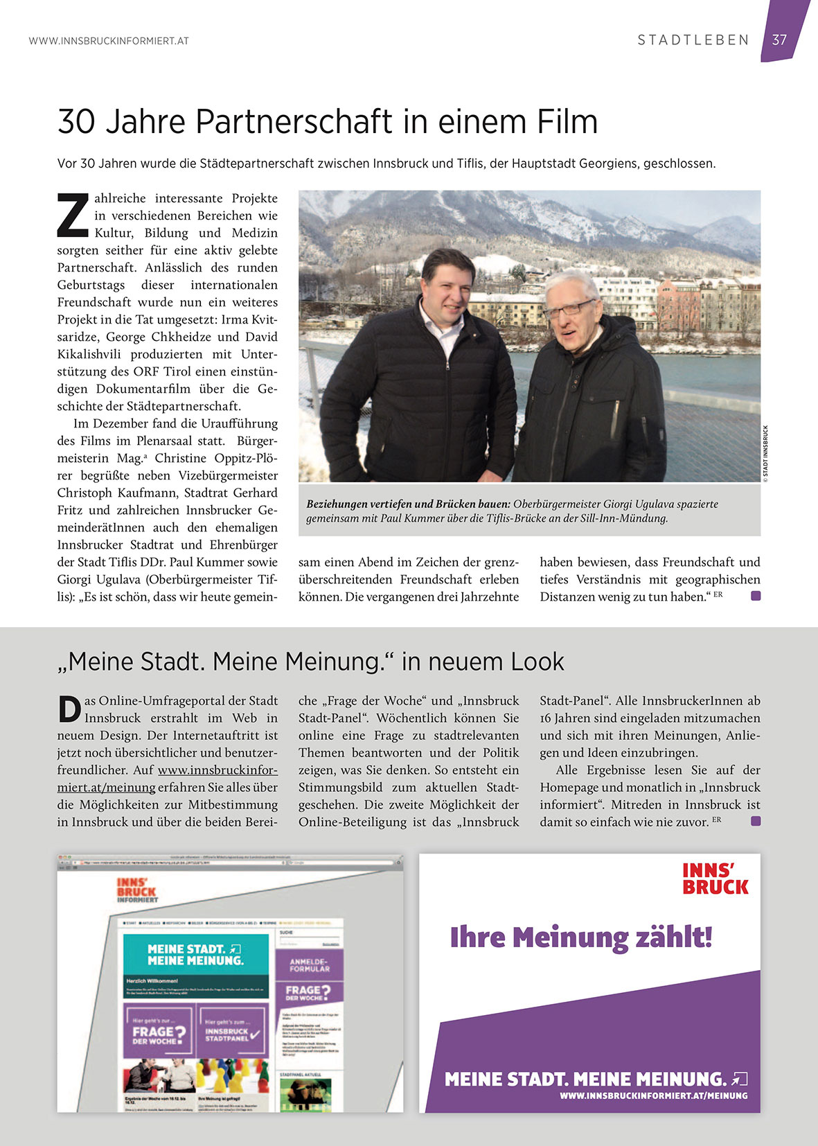 vor 30 Jahren wurde die Städtepartnerschaft zwischen innsbruck und Tiflis, der hauptstadt Georgiens, geschlossen.