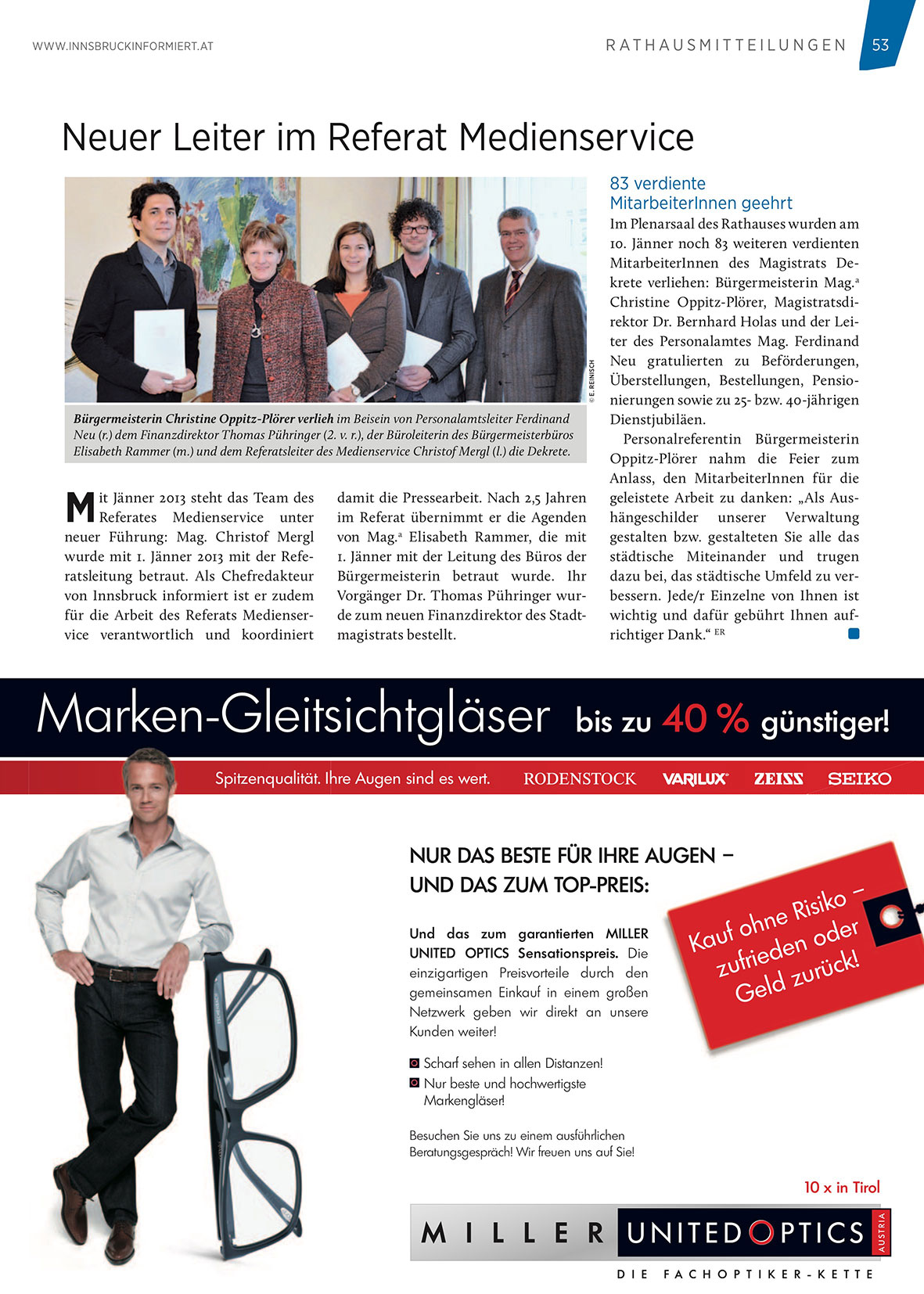 wurde mit 1. Jänner 2013 mit der Referatsleitung betraut. Als Chefredakteur