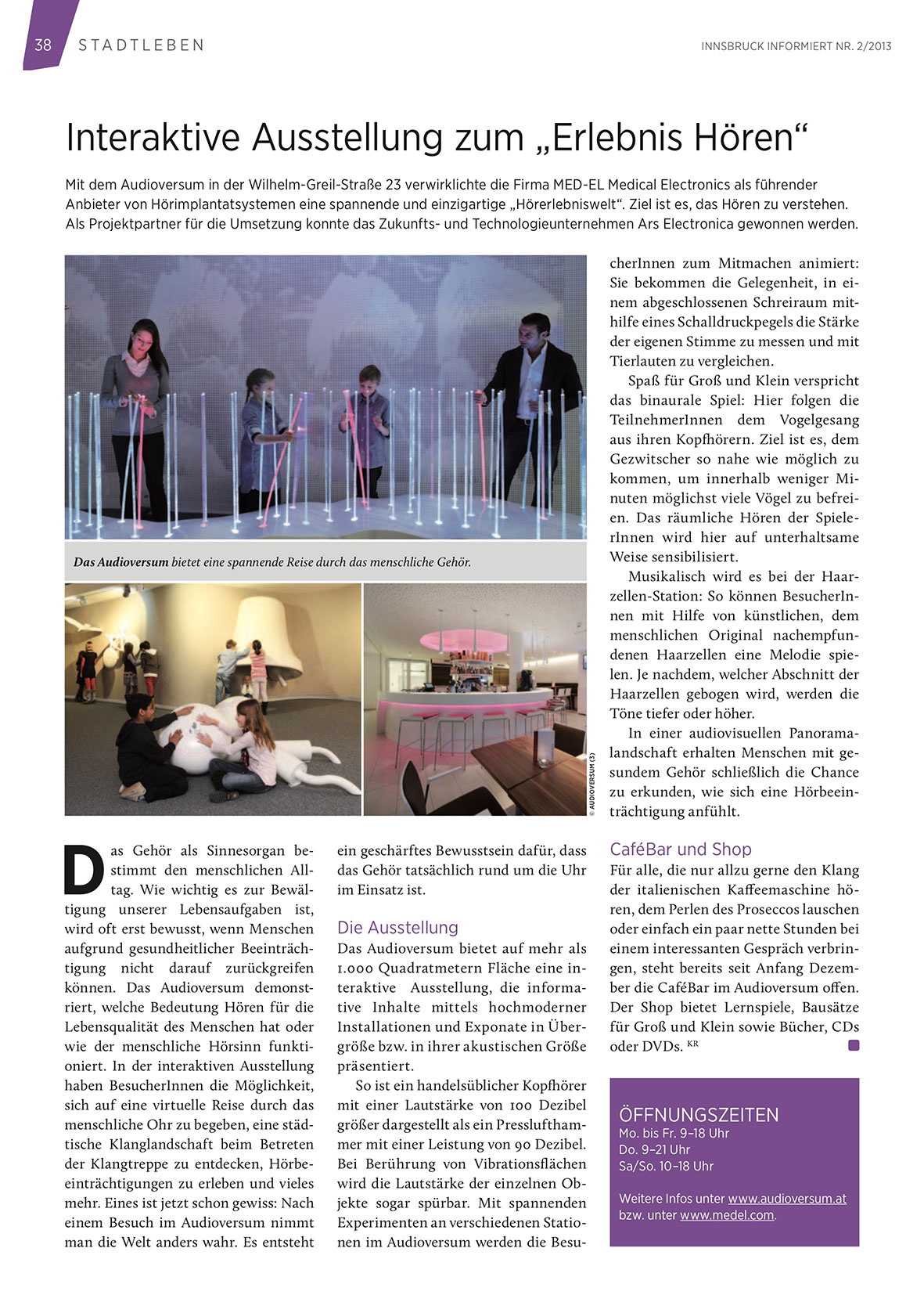 Mit dem Audioversum in der Wilhelm-Greil-Straße 23 verwirklichte die Firma MED-EL Medical Electronics als führender