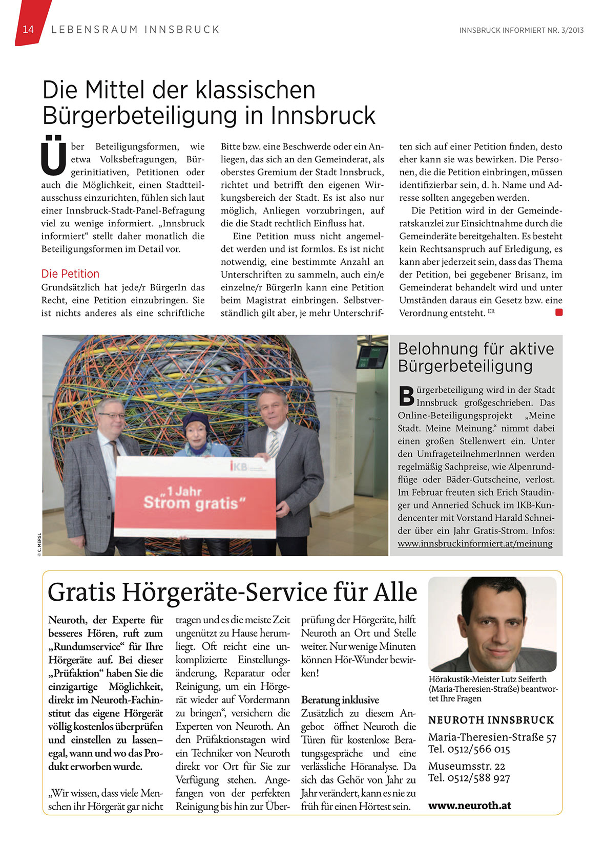 beim Magistrat einbringen. Selbstverständlich gilt aber, je mehr Unterschrif-