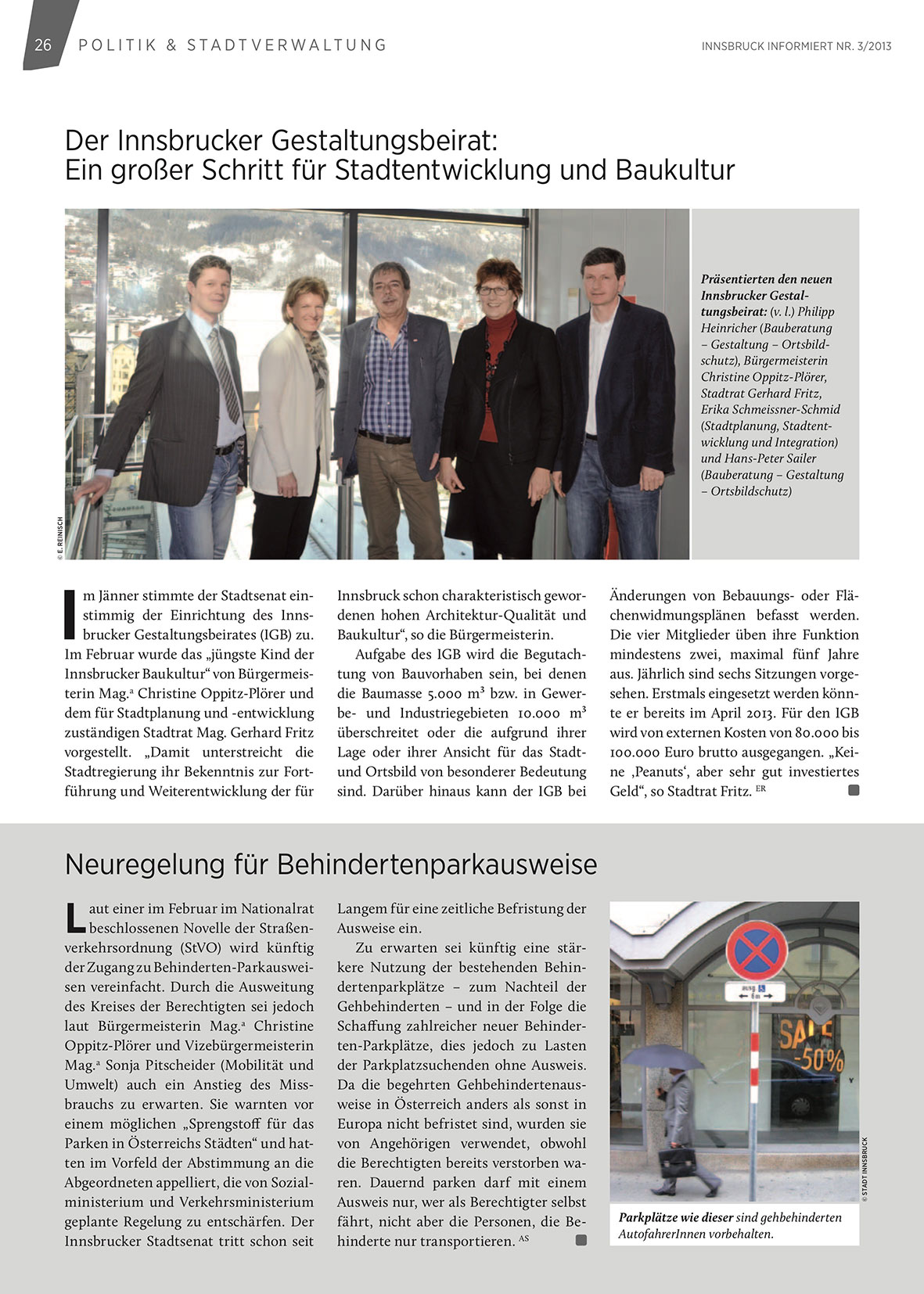 Innsbrucker Baukultur“ von Bürgermeisterin Mag.a Christine Oppitz-Plörer und