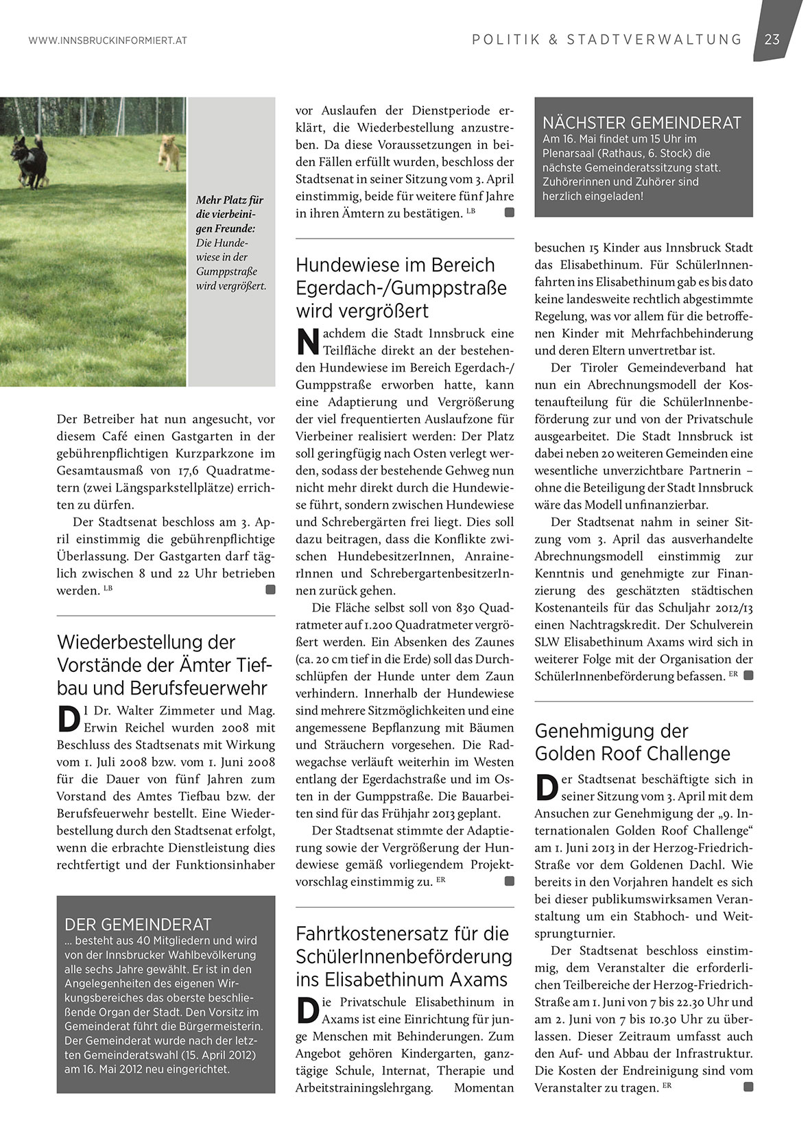 Der Stadtsenat stimmte der Adaptierung sowie der Vergrößerung der Hundewiese gemäß vorliegendem Projektvorschlag einstimmig zu. ER