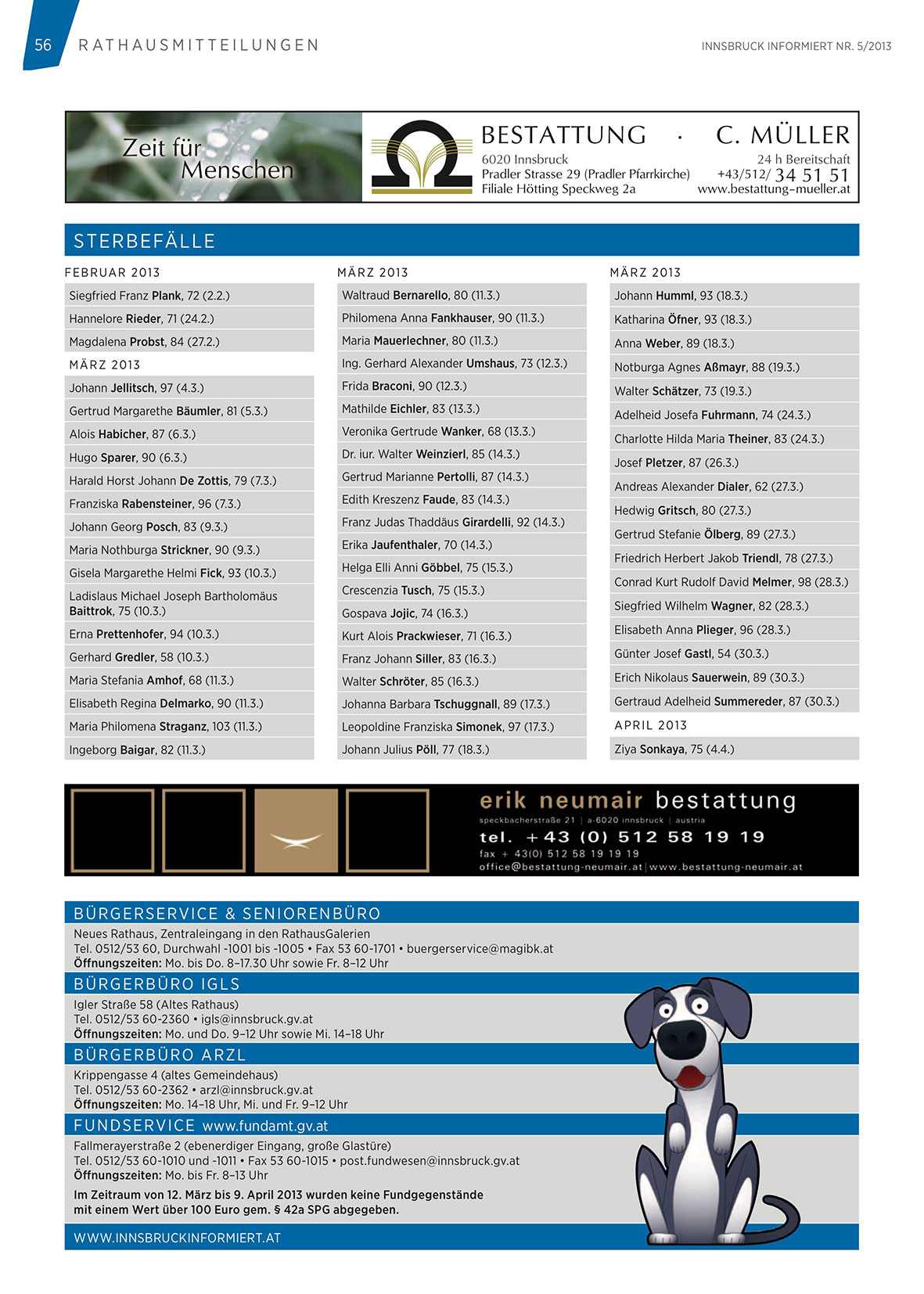 Tel. 0512/53 60-1010 und -1011 • Fax 53 60-1015 • post.fundwesen@innsbruck.gv.at