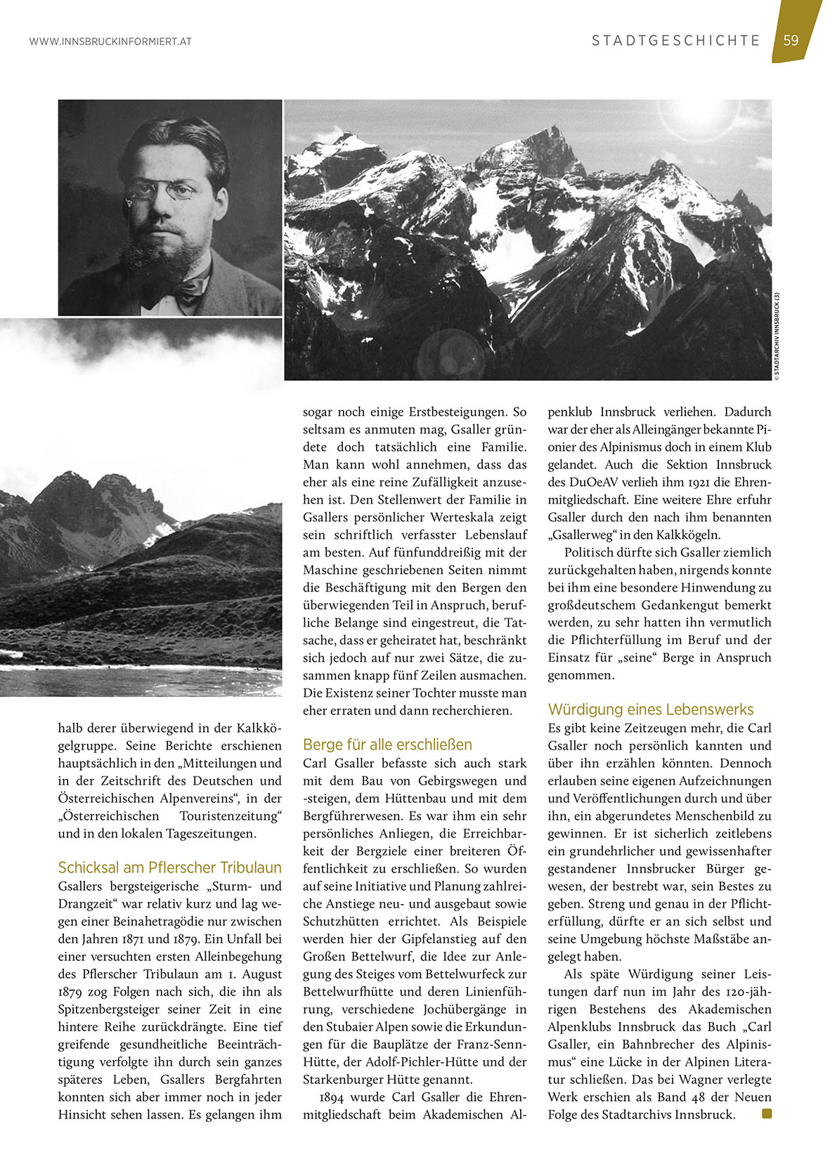 Gsaller, ein Bahnbrecher des Alpinismus“ eine Lücke in der Alpinen Literatur schließen. Das bei Wagner verlegte