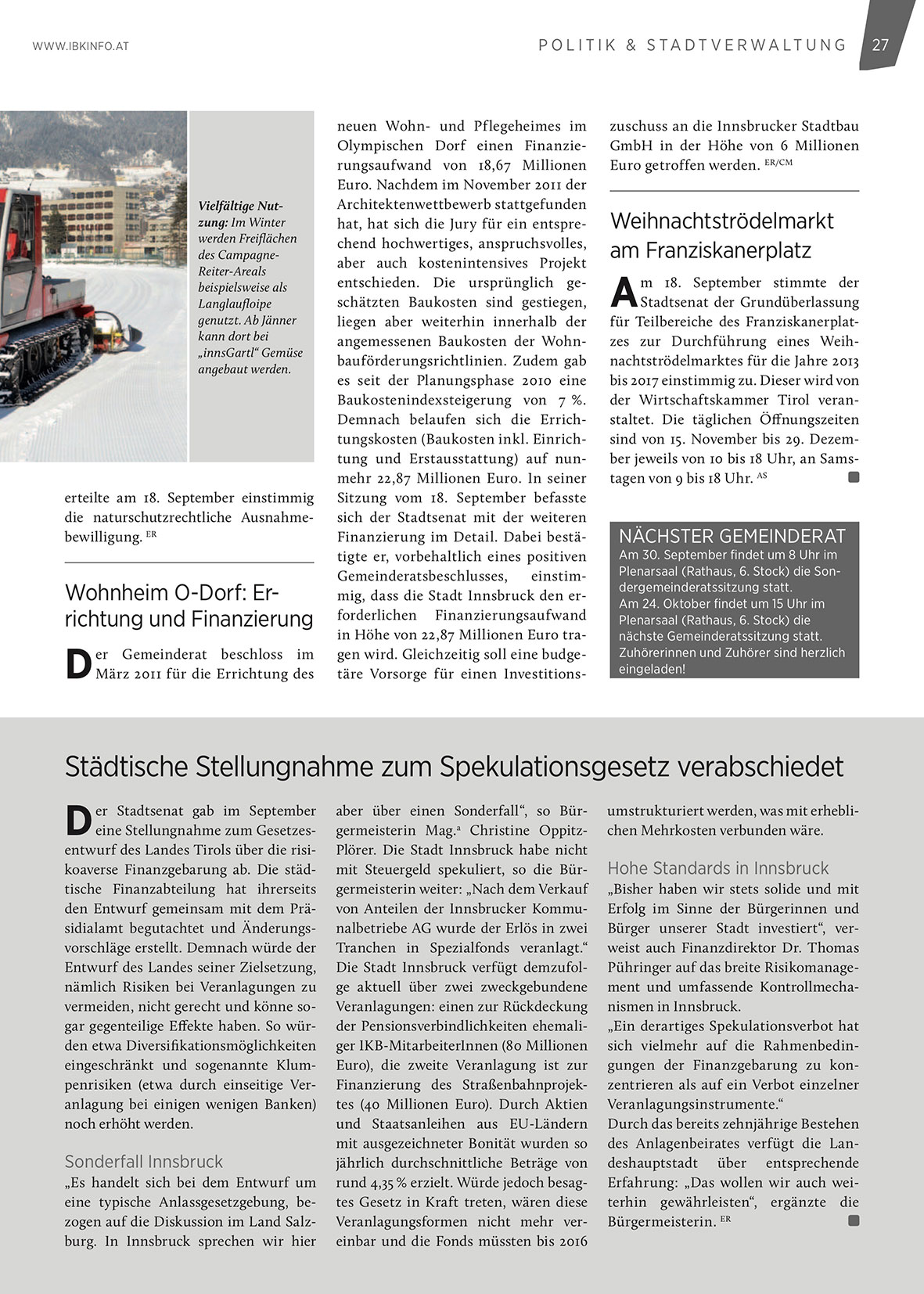 aber über einen Sonderfall“, so Bürgermeisterin Mag.a Christine OppitzPlörer. Die Stadt Innsbruck habe nicht