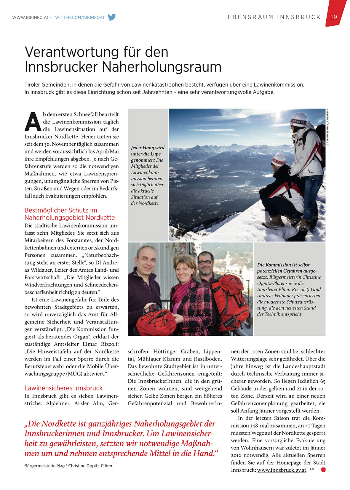 Innsbruckerinnen und Innsbrucker. Um Lawinensicherheit zu gewährleisten, setzten wir notwendige Maßnahmen um und nehmen entsprechende Mittel in die Hand.“