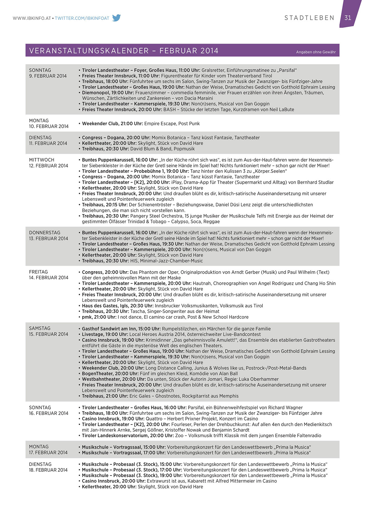 ver an s talt u n g s k alen d er – FEBRUAR 2014