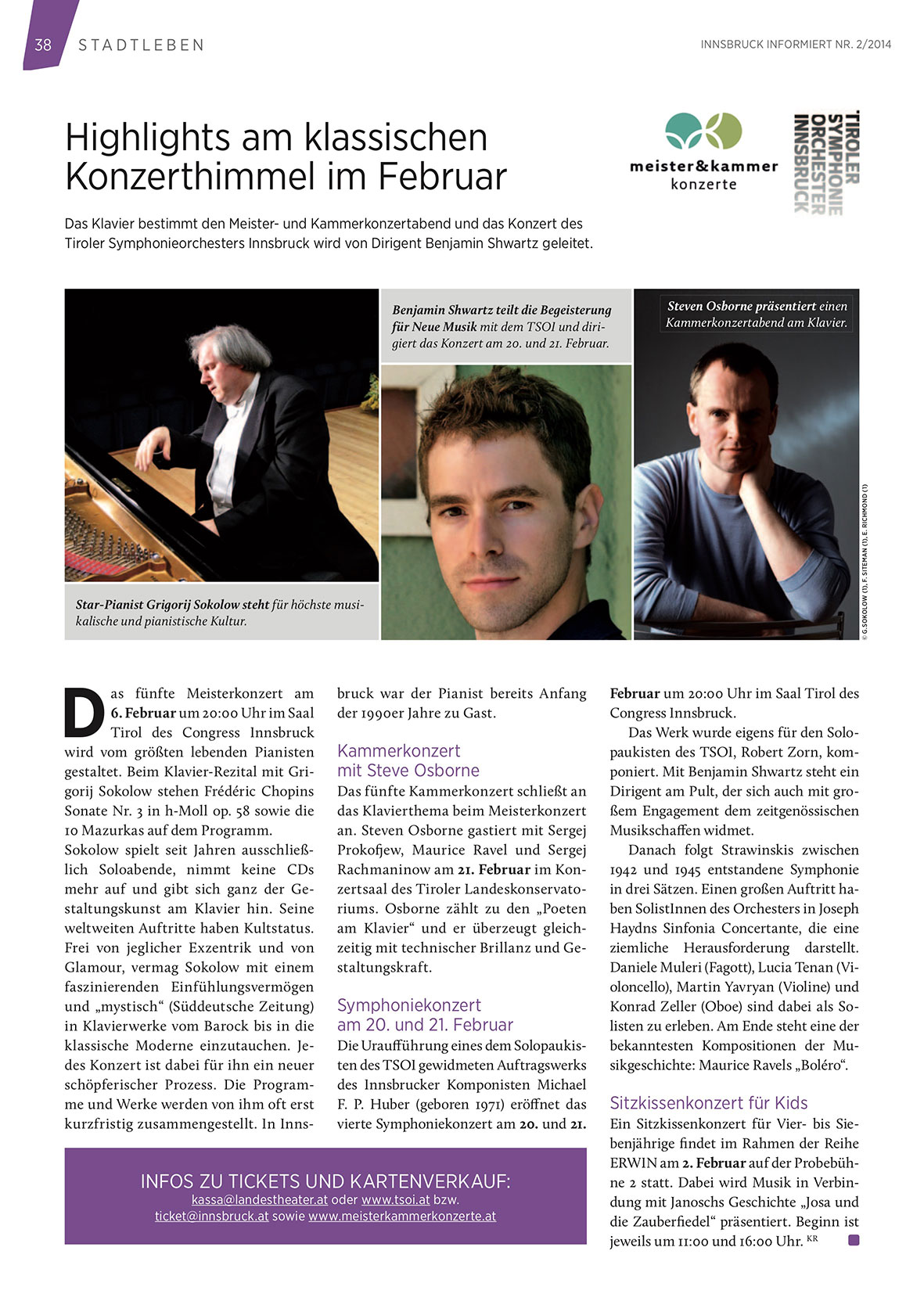 ticket@innsbruck.at sowie www.meisterkammerkonzerte.at