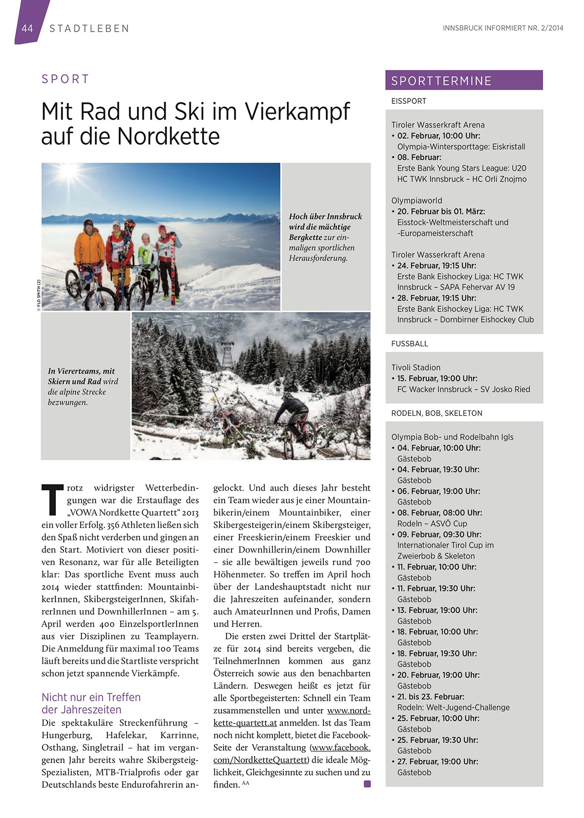 zusammenstellen und unter www.nordkette-quartett.at anmelden. Ist das Team