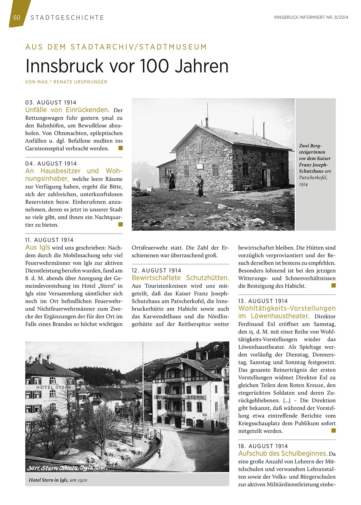 Inserat aus den Innsbrucker Nachrichten vom 14. September 1914, Nr. 256, S. 9