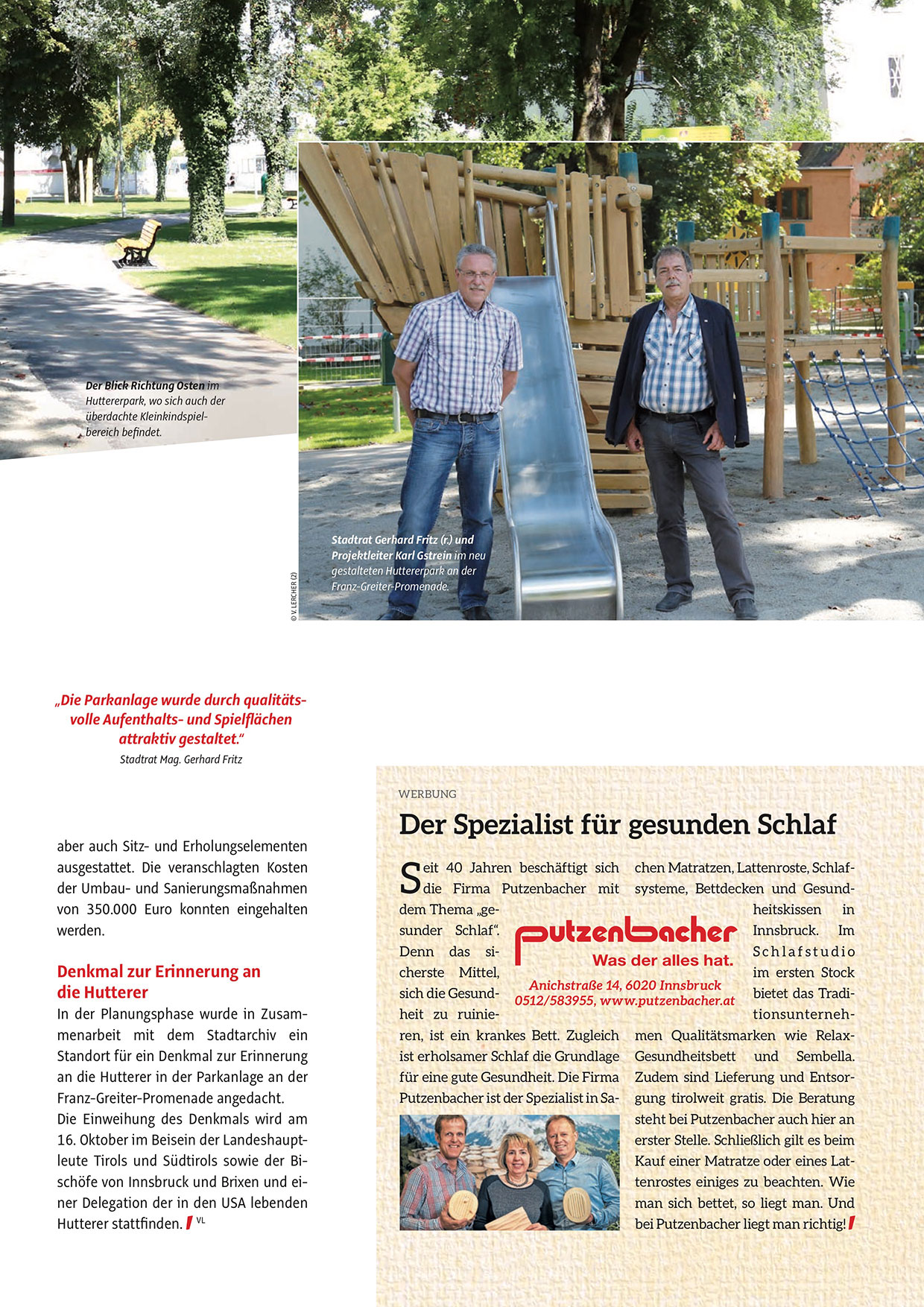 Huttererpark, wo sich auch der