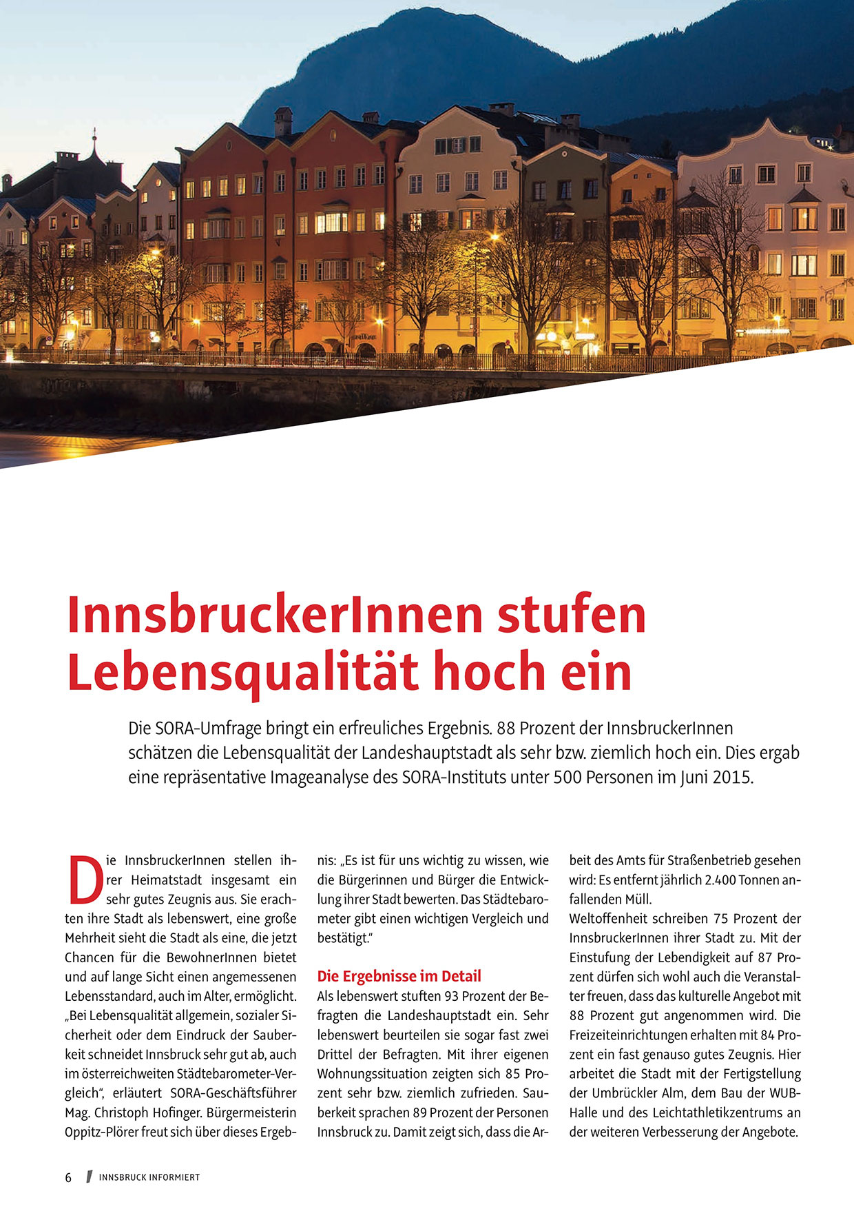 „Bei Lebensqualität allgemein, sozialer Sicherheit oder dem Eindruck der Sauberkeit schneidet Innsbruck sehr gut ab, auch