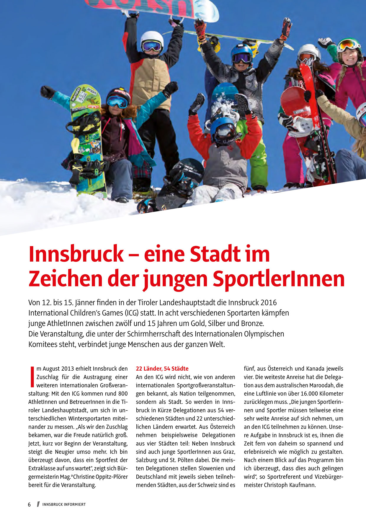 AthletInnen und BetreuerInnen in die Tiroler Landeshauptstadt, um sich in unterschiedlichen Wintersportarten miteinander zu messen . „Als wir den Zuschlag