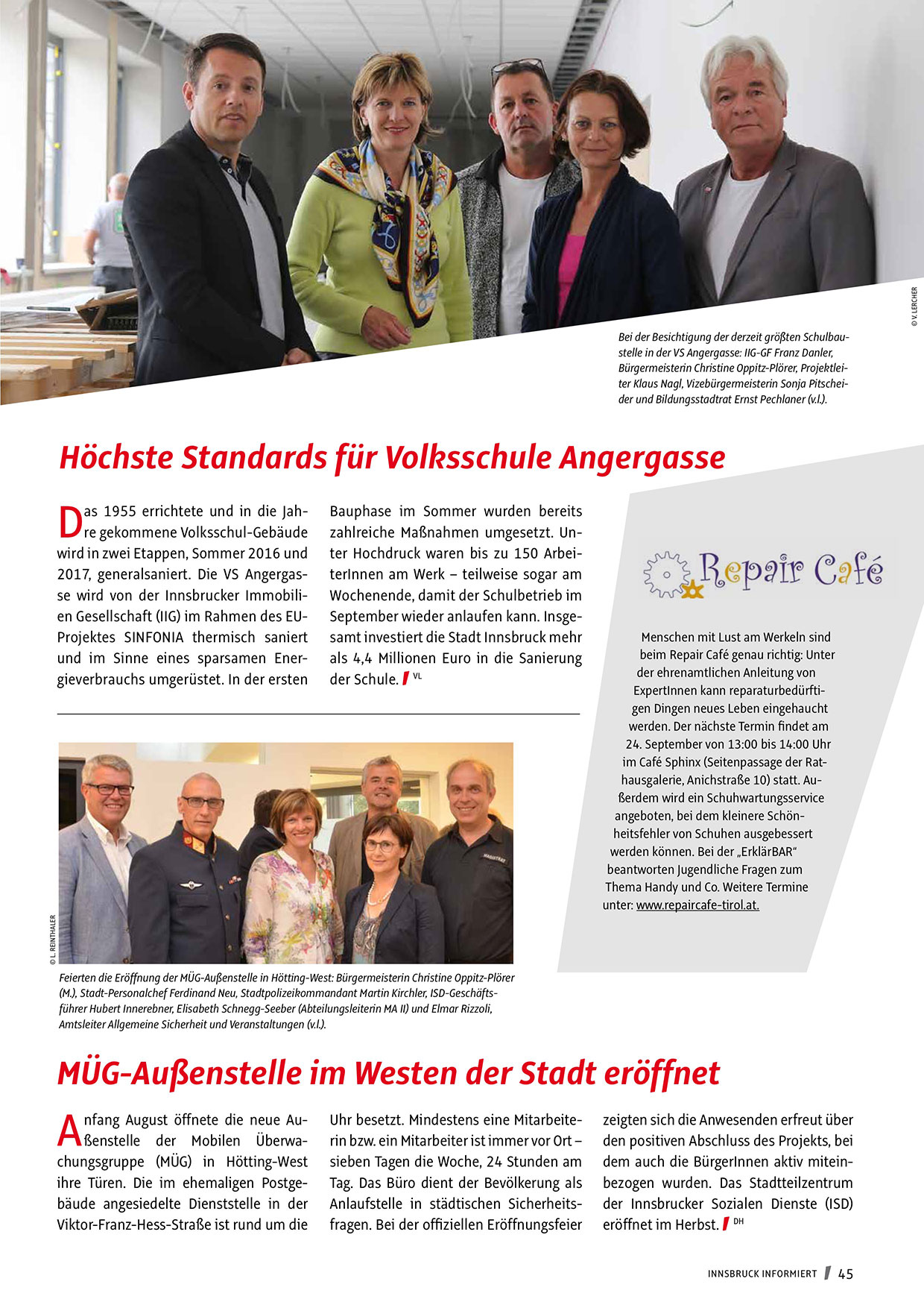 2017, generalsaniert. Die VS Angergasse wird von der Innsbrucker Immobilien Gesellschaft (IIG) im Rahmen des EUProjektes SINFONIA thermisch saniert