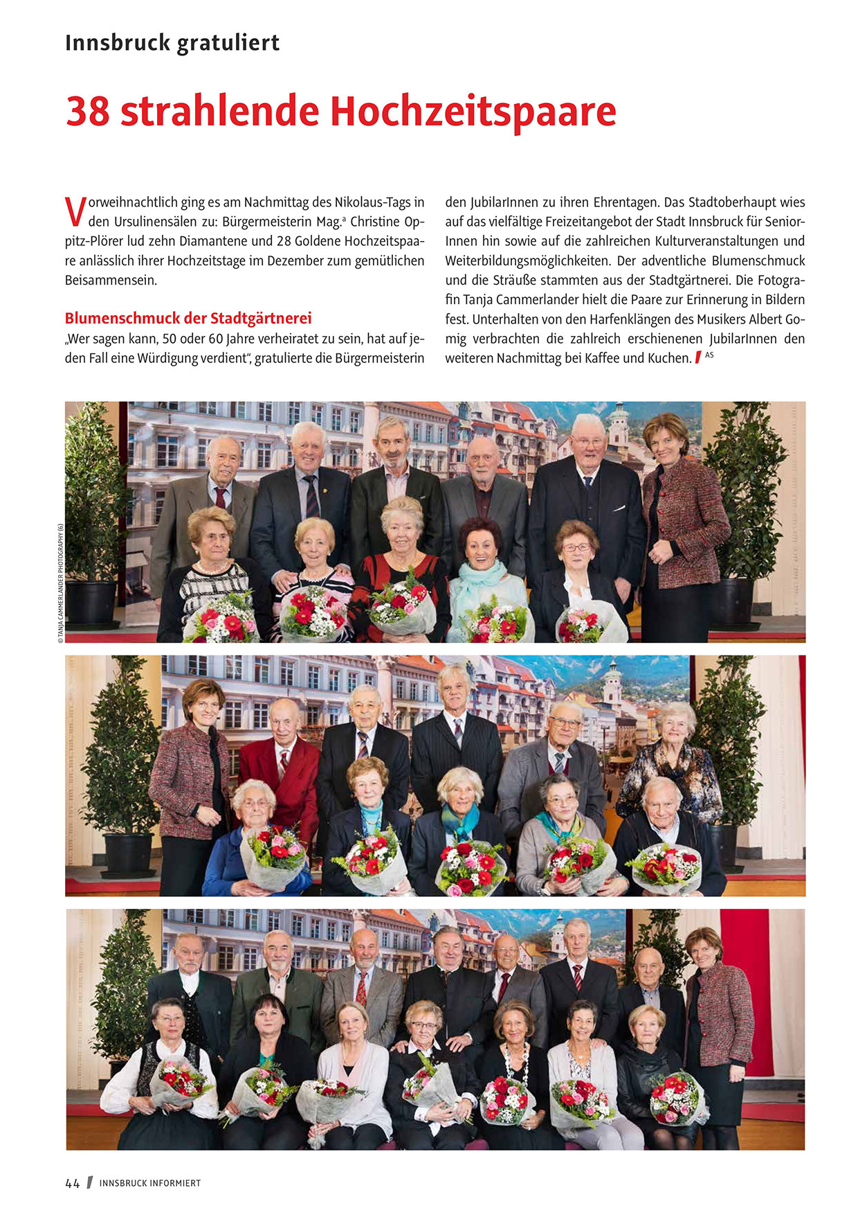 den Ursulinensälen zu: Bürgermeisterin Mag.a Christine Oppitz-Plörer lud zehn Diamantene und 28 Goldene Hochzeitspaare anlässlich ihrer Hochzeitstage im Dezember zum gemütlichen