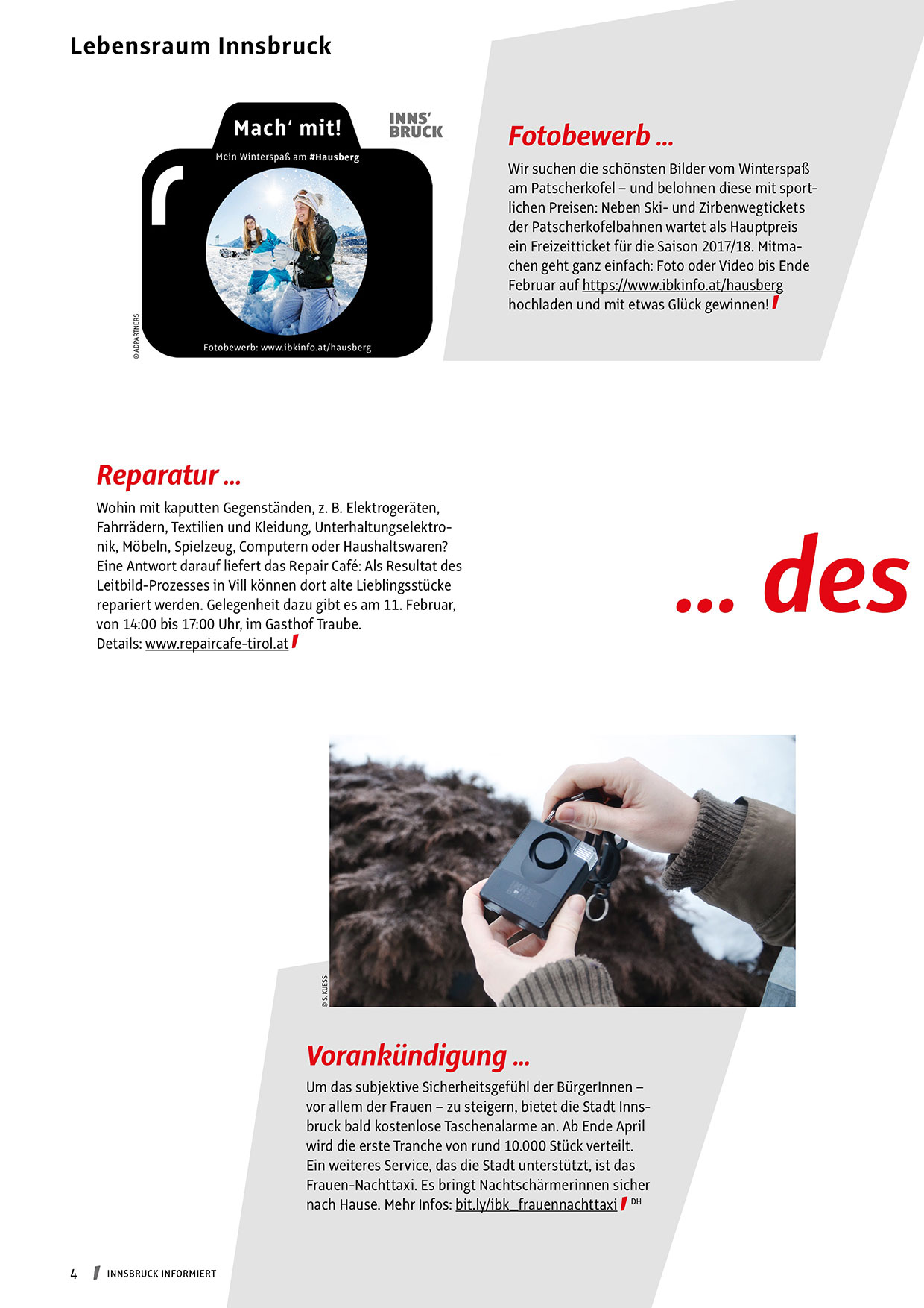 vor allem der Frauen – zu steigern, bietet die Stadt Innsbruck bald kostenlose Taschenalarme an. Ab Ende April