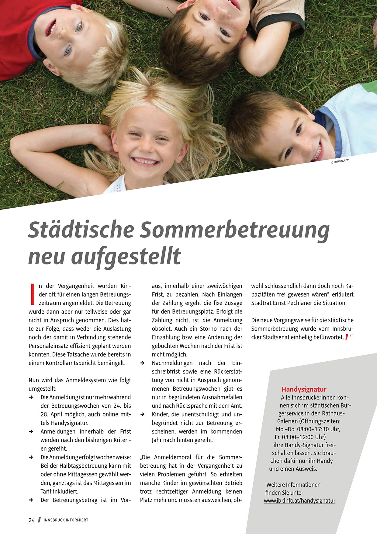 Sommerbetreuung wurde vom Innsbrucker Stadtsenat einhellig befürwortet. KR